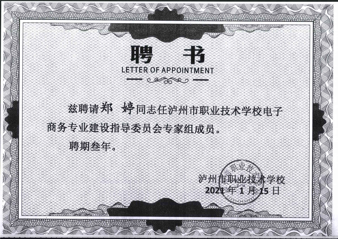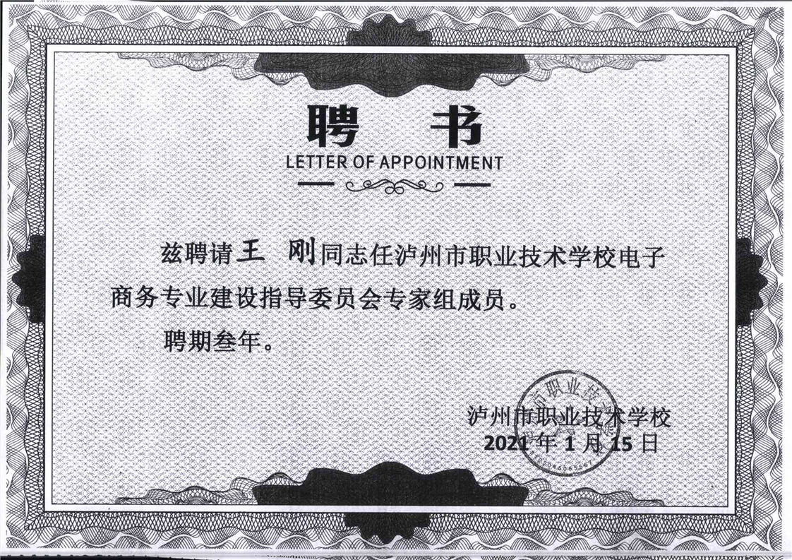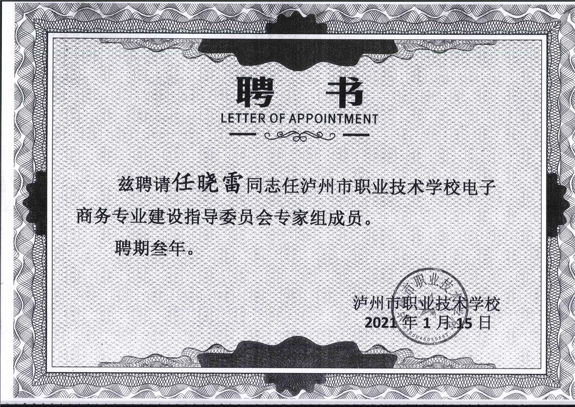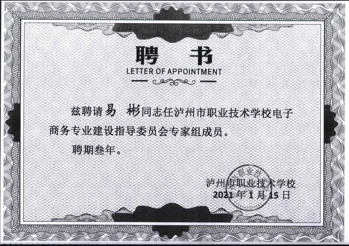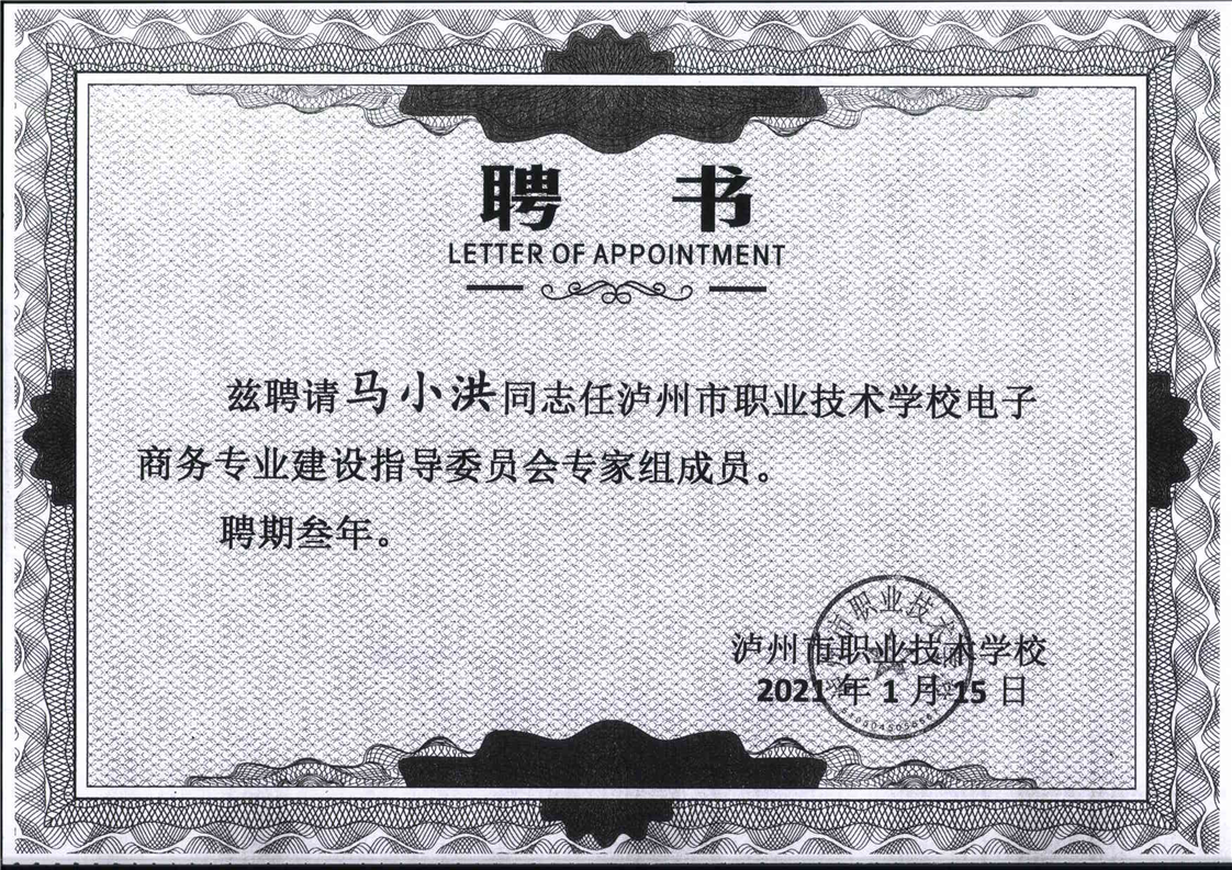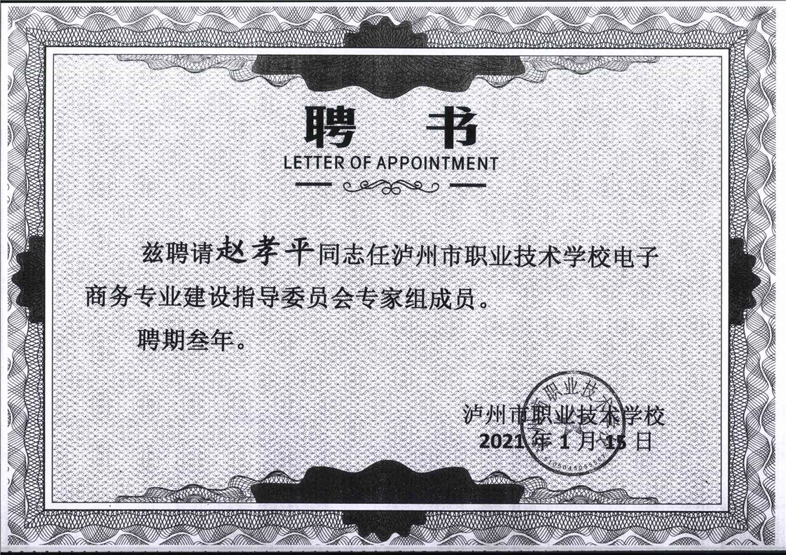电子商务专业建设委员会专家聘书