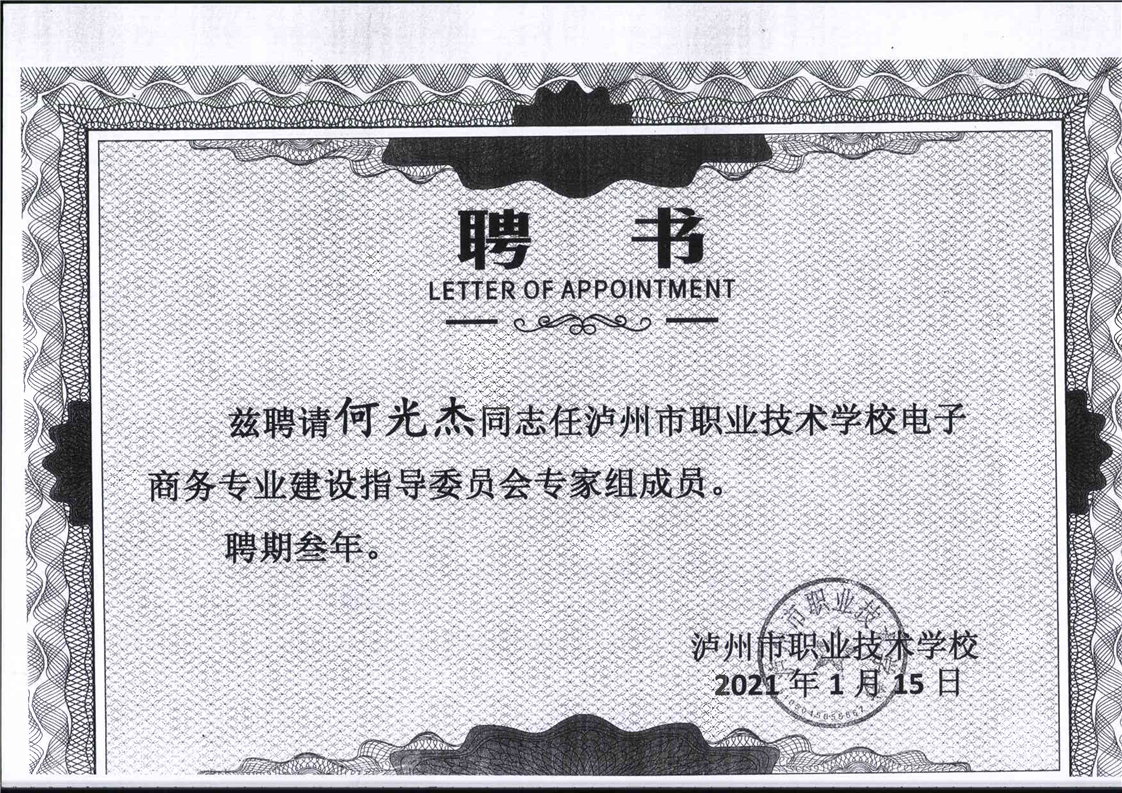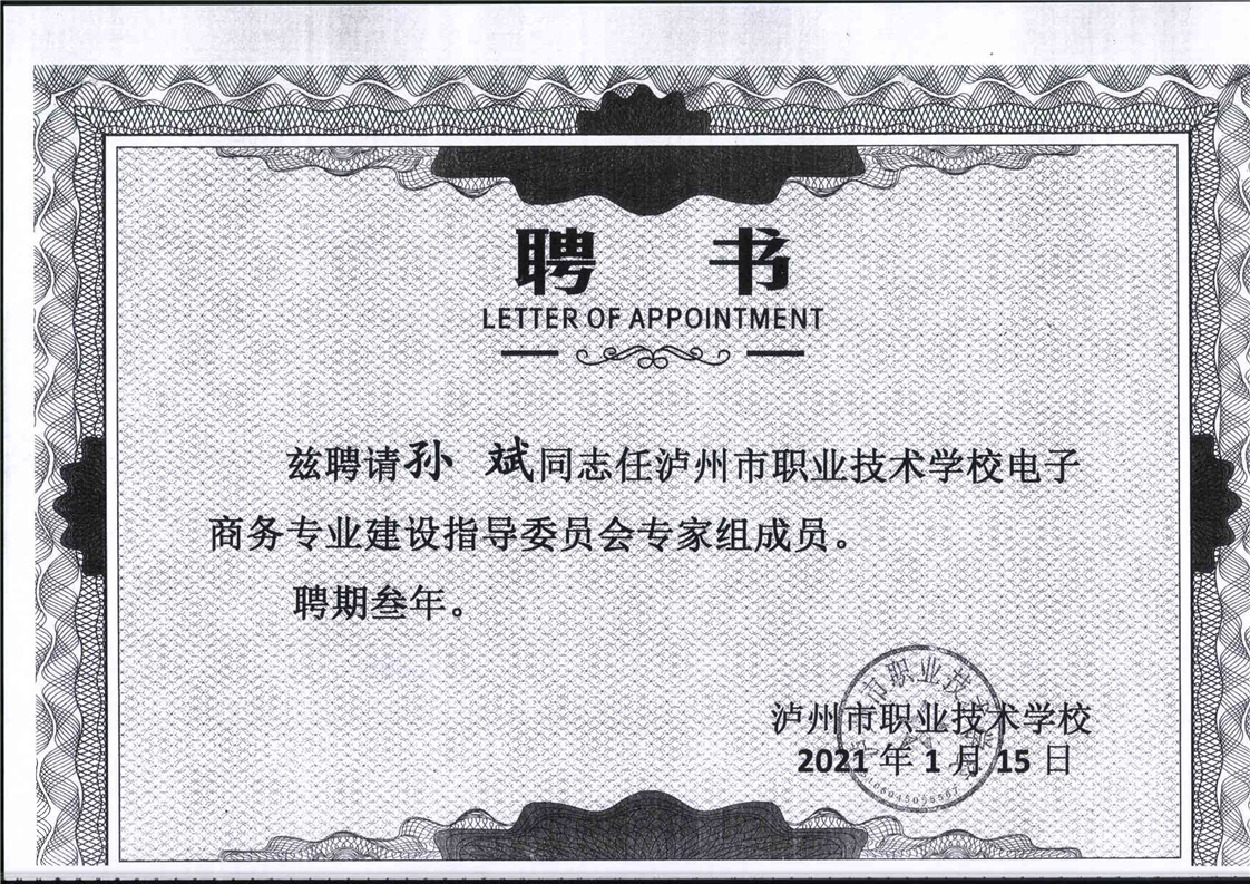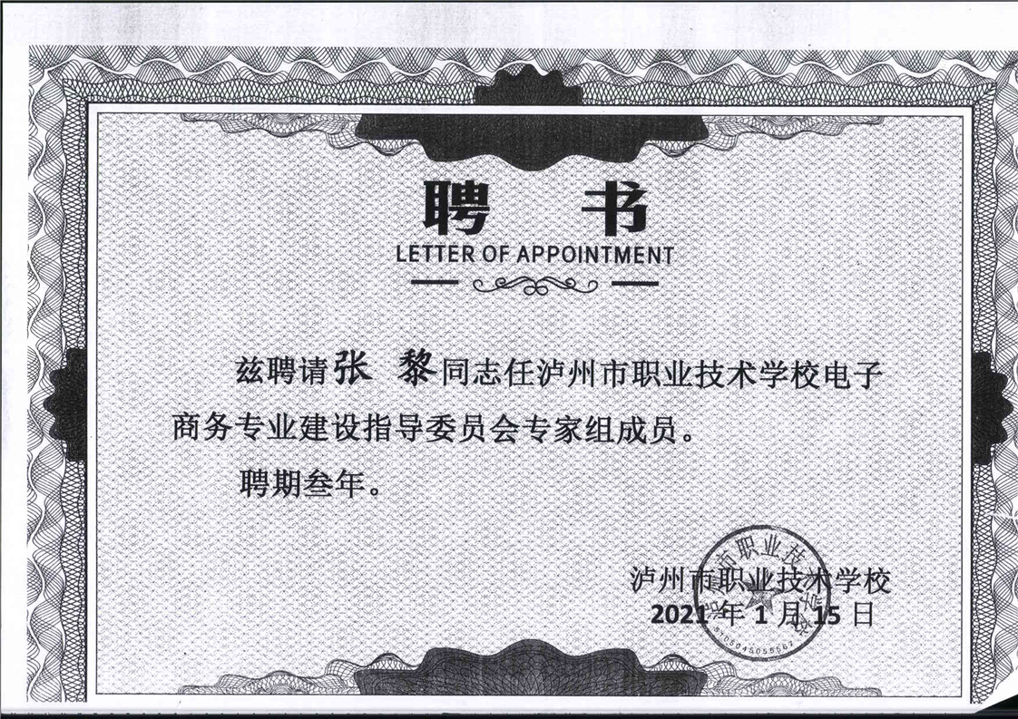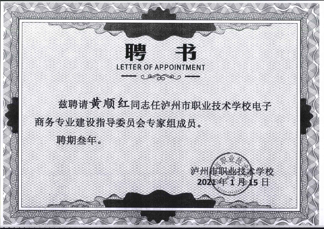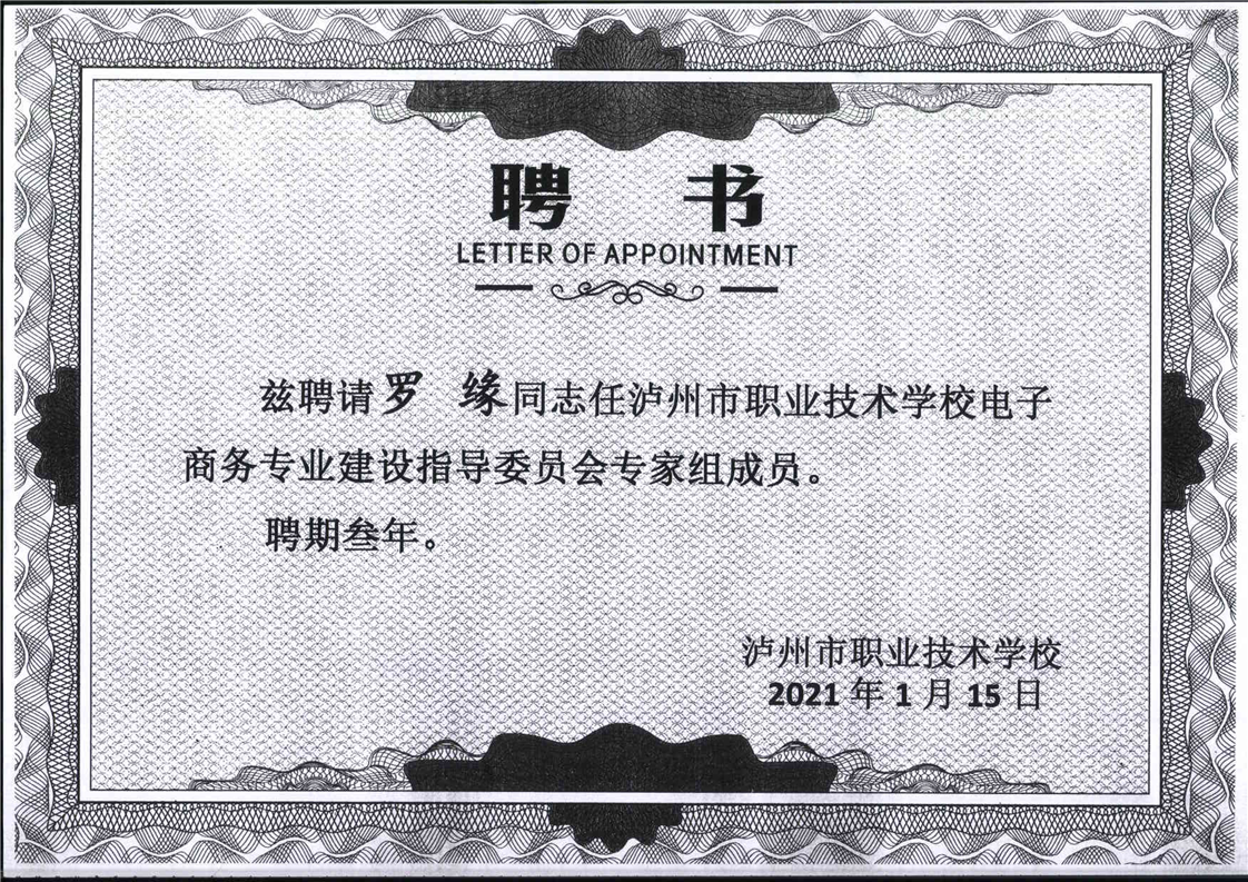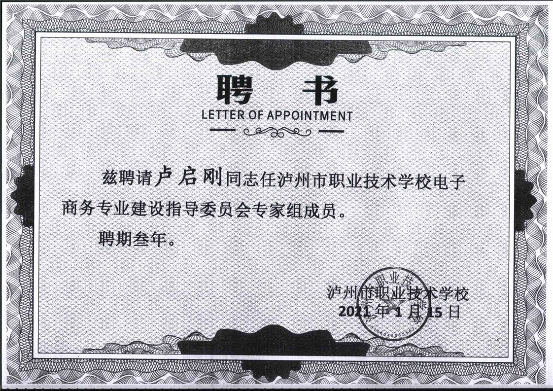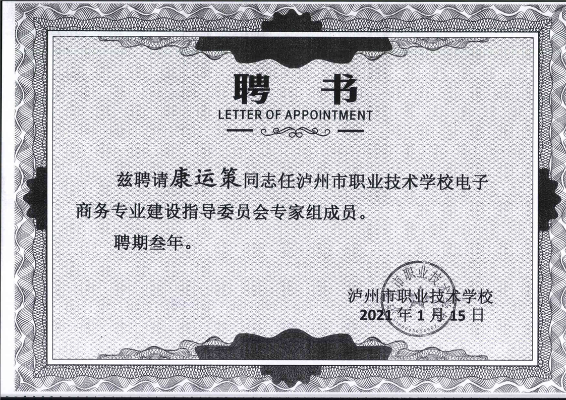 电子商务专业建设委员会专家聘书