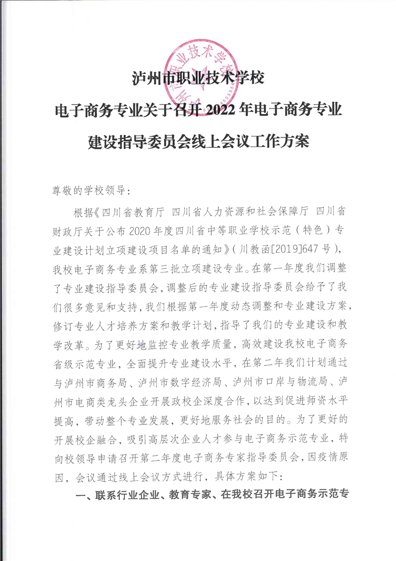 召开第二年电子商务专业建设委员会方案