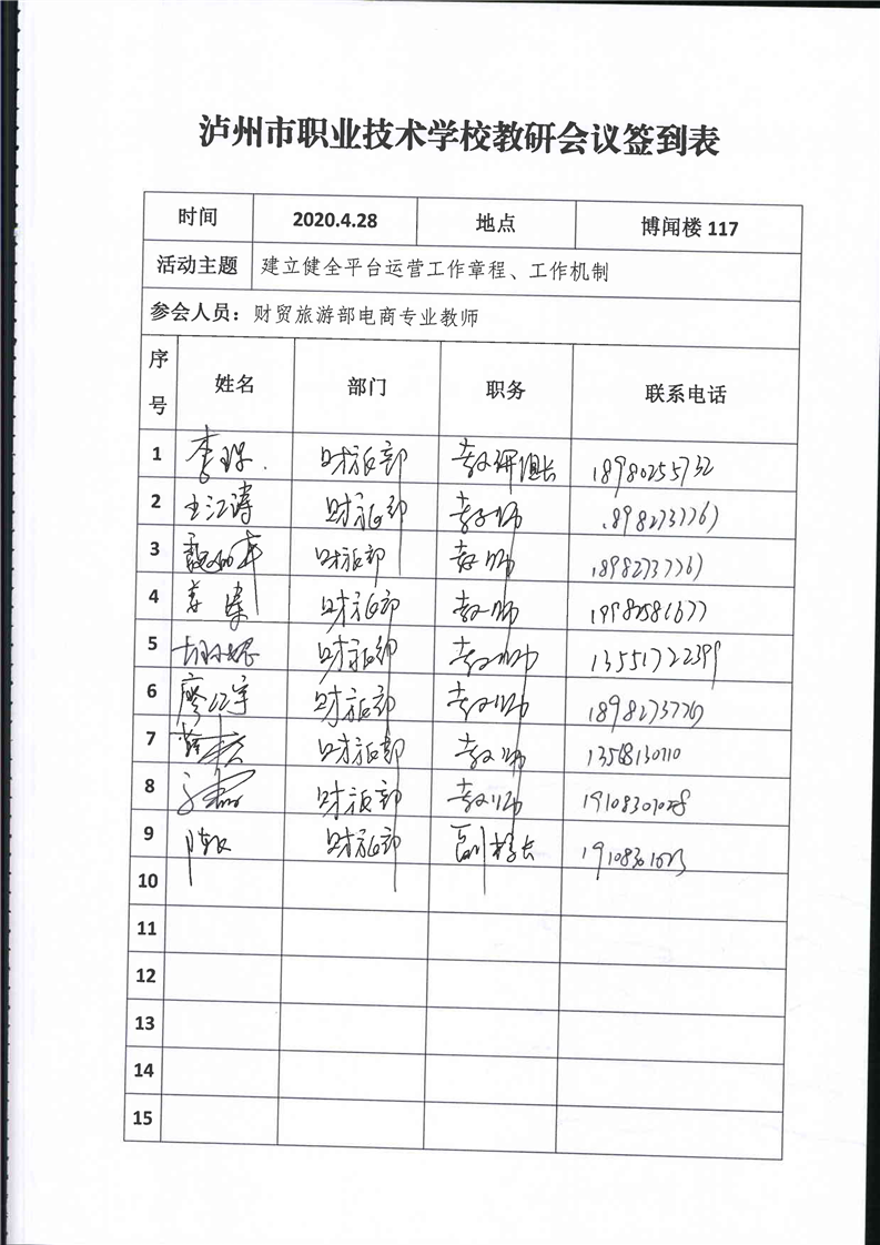 拾贝电商平台建设教研签到表、会议纪要