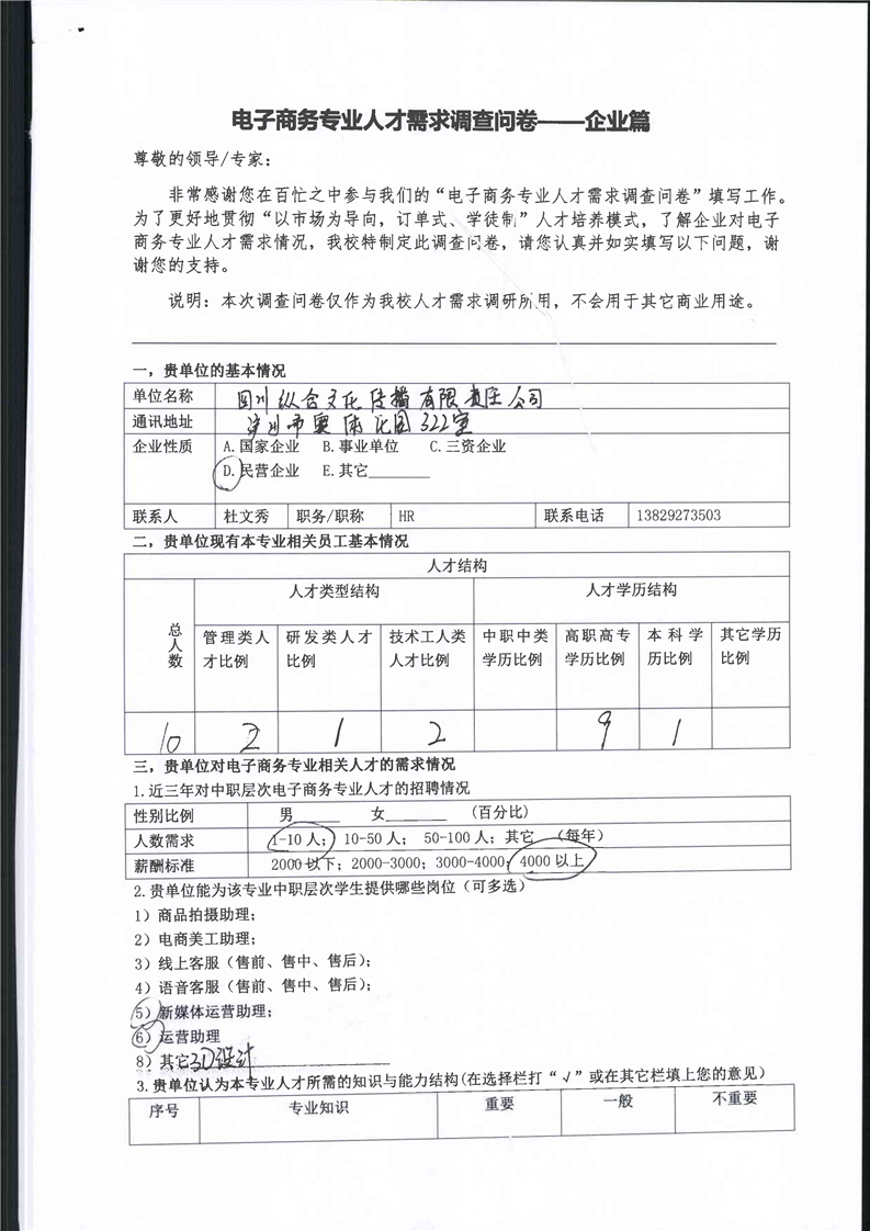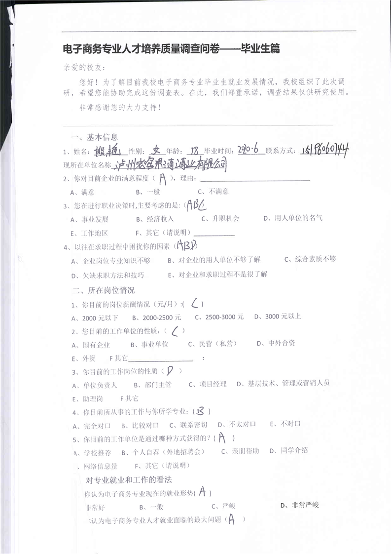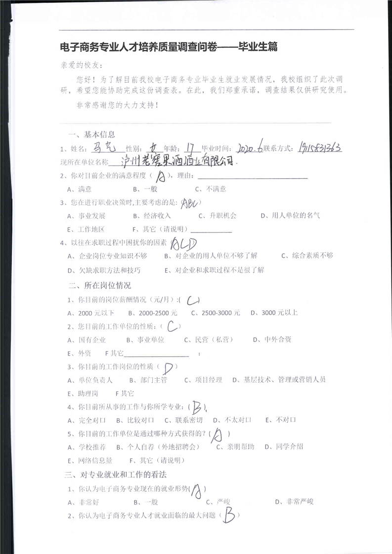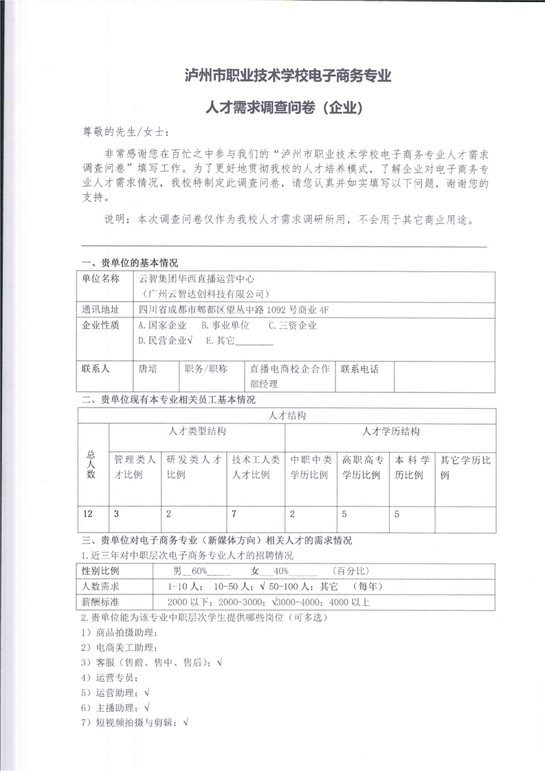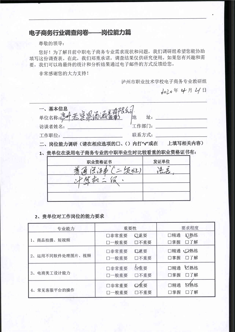 高校、企业调查问卷
