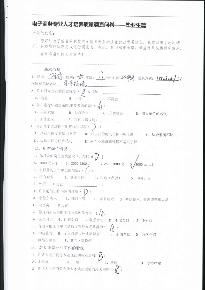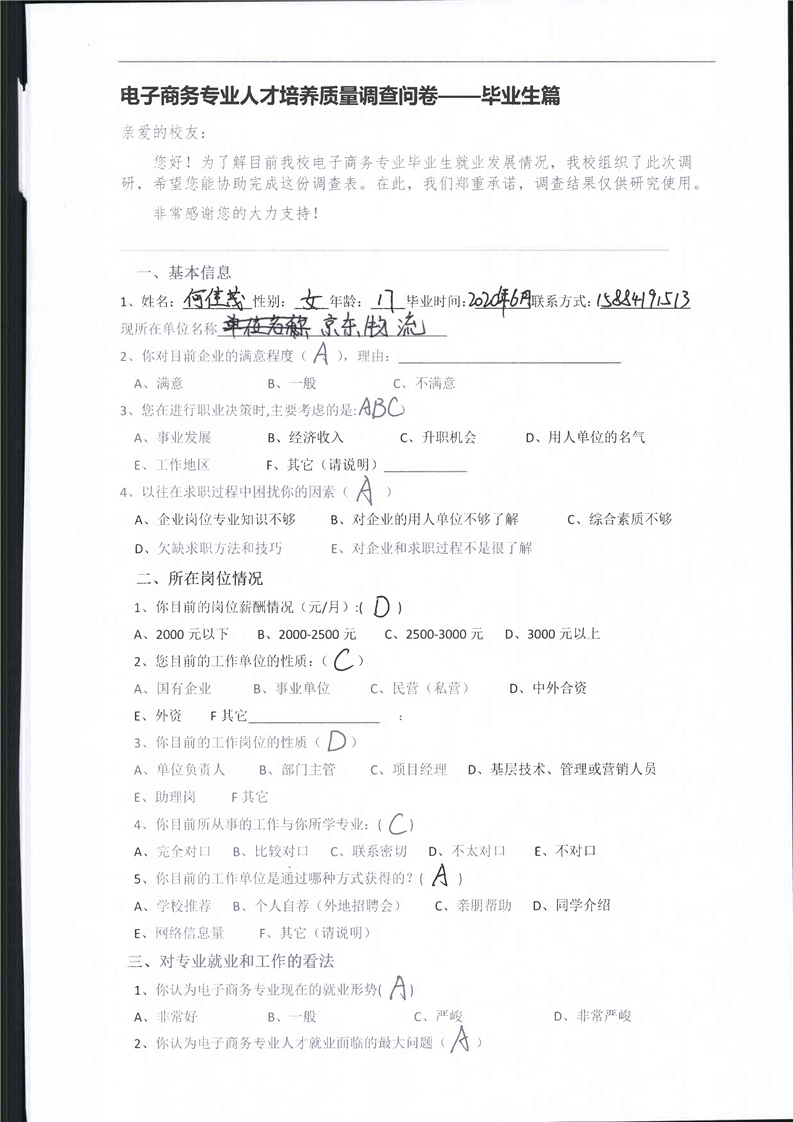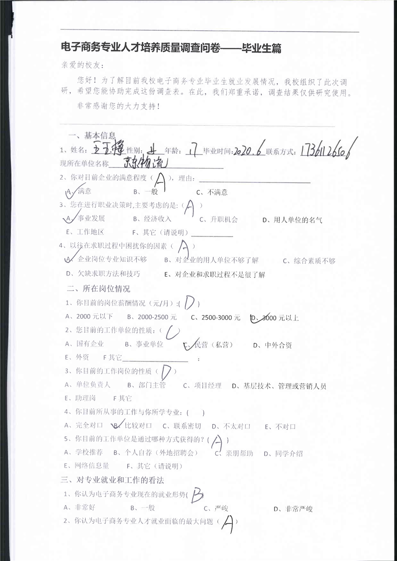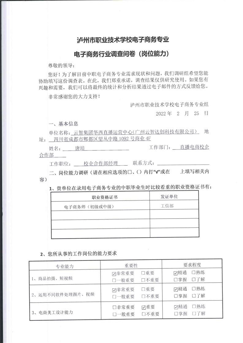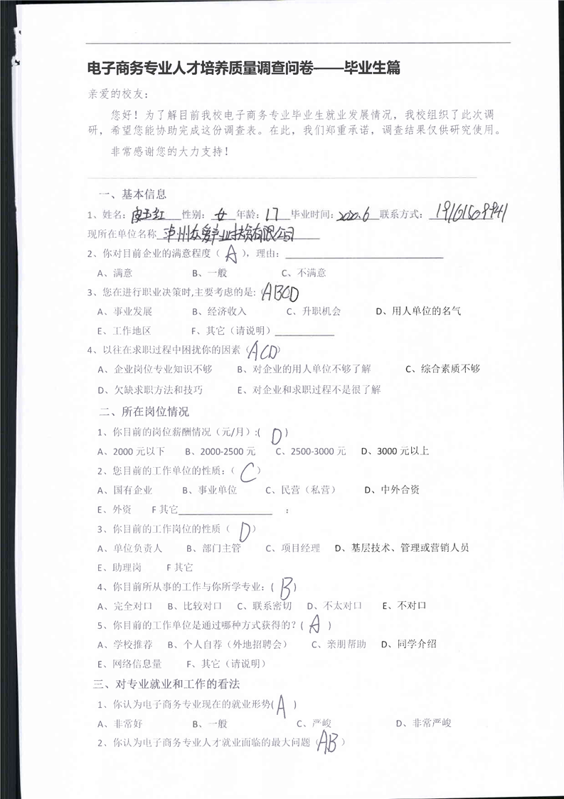 高校、企业调查问卷