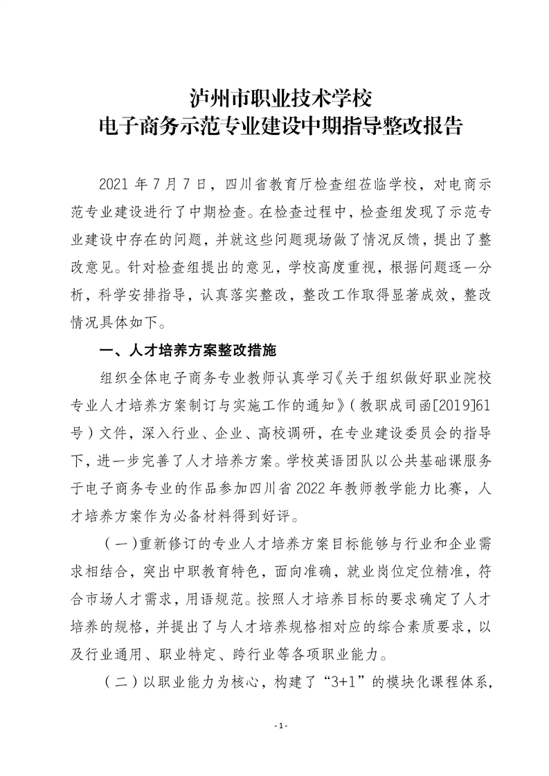 当前页面:电子商务省级示范专业终期验收 >> 项目完成总览 >> 前期材料 >> 整改报告