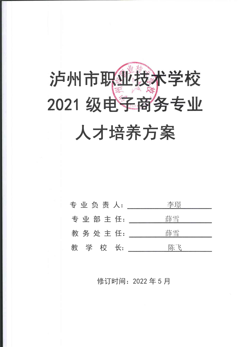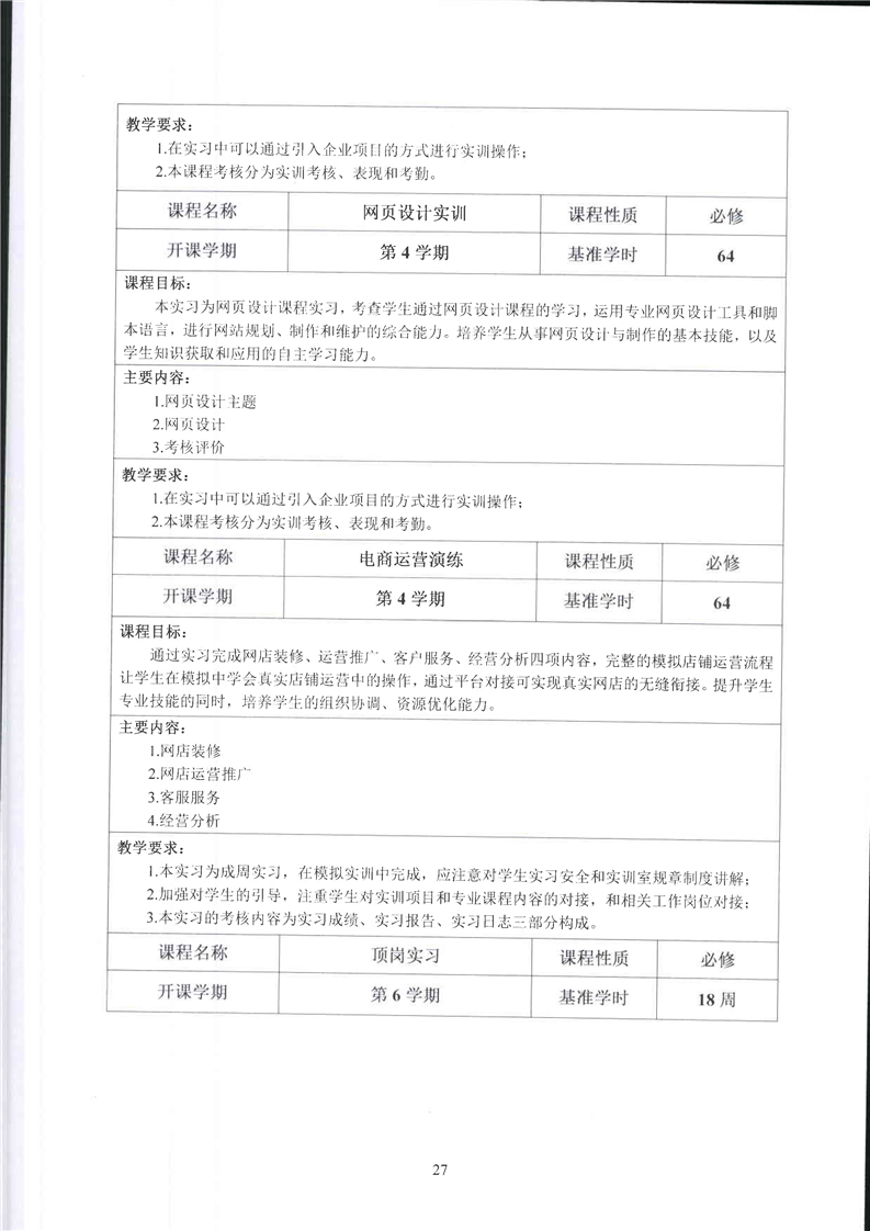 当前页面:电子商务省级示范专业终期验收 >> 项目完成总览 >> 直接成果 >> 专业人才培养方案