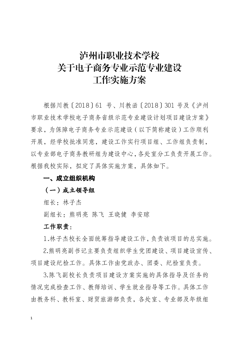 泸州市职业技术学校关于电子商务示范专业建设工作实施办法
