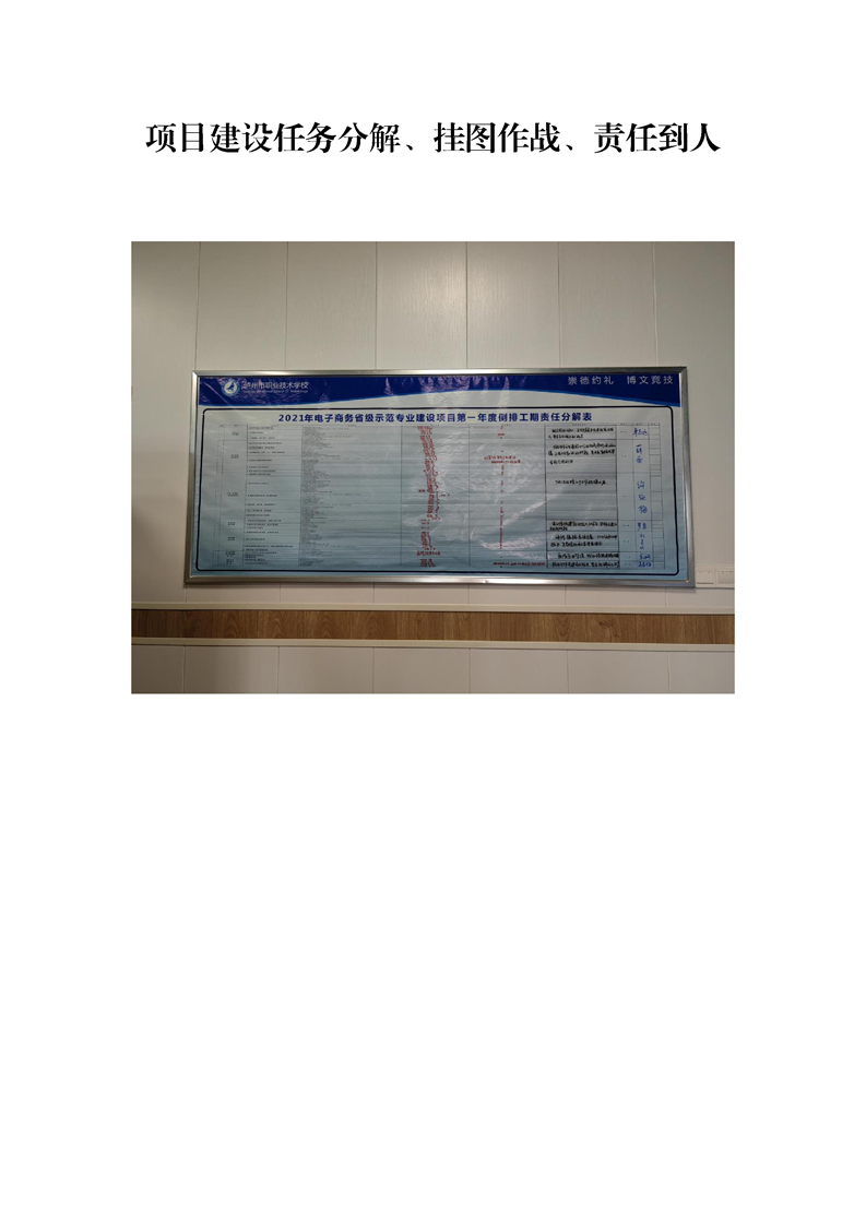 当前页面:电子商务省级示范专业终期验收 >> 专业建设任务 >> 项目建设总体情况 >> 工作机制与举措 >> 04 挂图作战