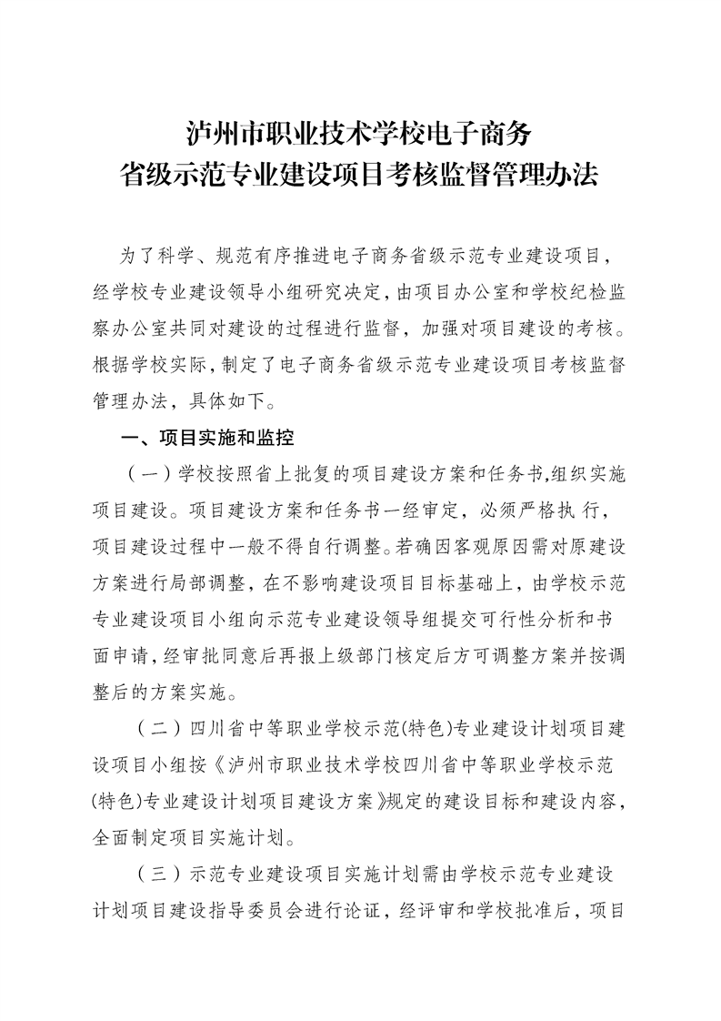 当前页面:电子商务省级示范专业终期验收 >> 专业建设任务 >> 项目建设总体情况 >> 工作机制与举措 >> 05 示范专业建设项目考核监督管理办法