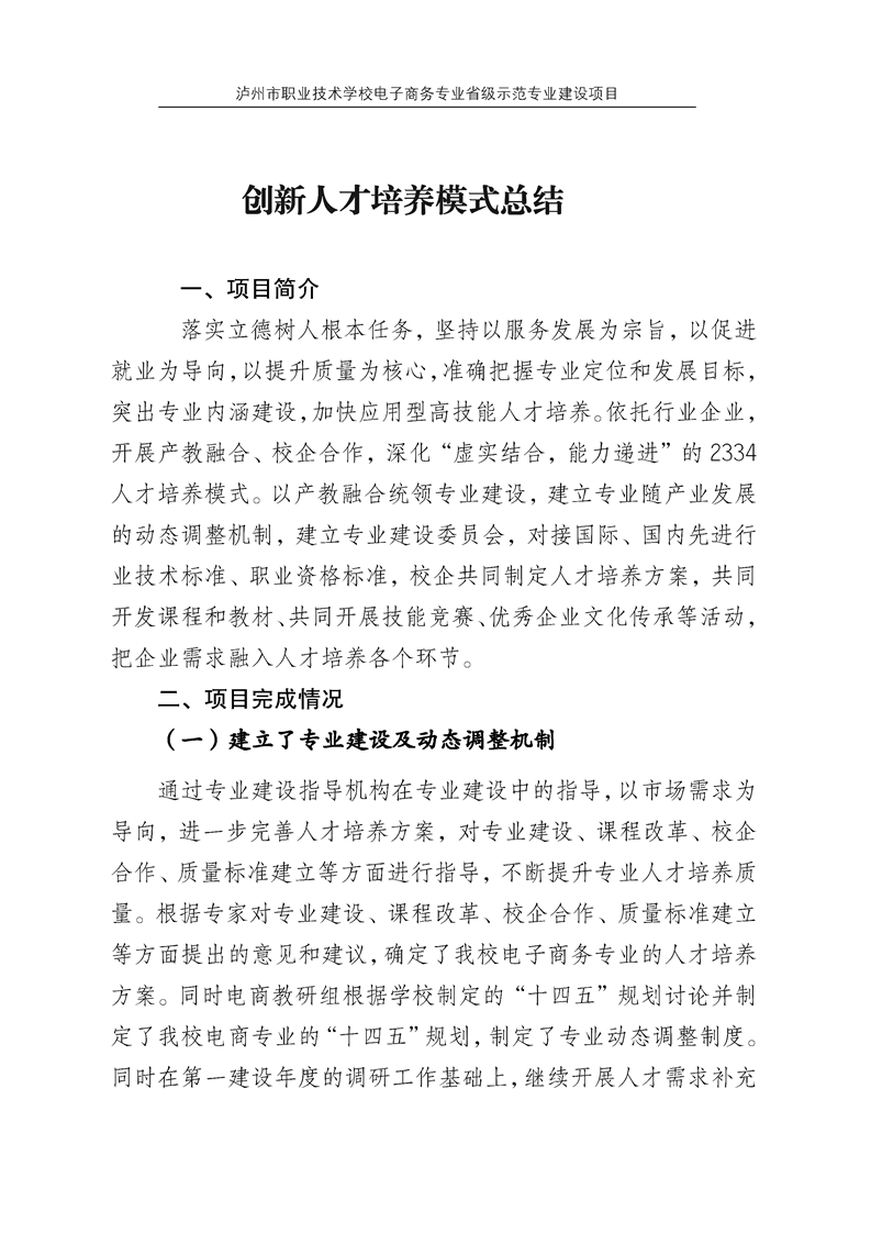 当前页面:电子商务省级示范专业终期验收 >> 专业建设任务 >> 创新人才培养模式 >> 项目总结