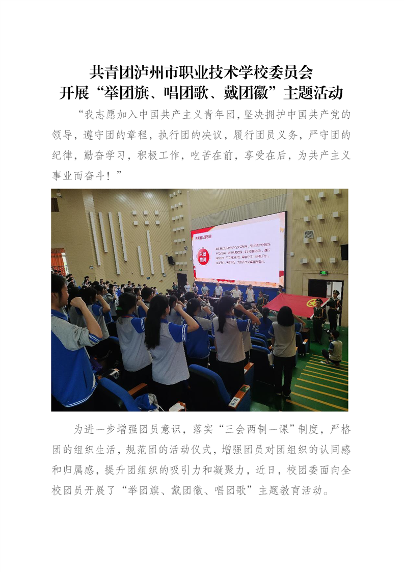 坚持开展“举团旗、唱团歌、戴团徽”活动资料