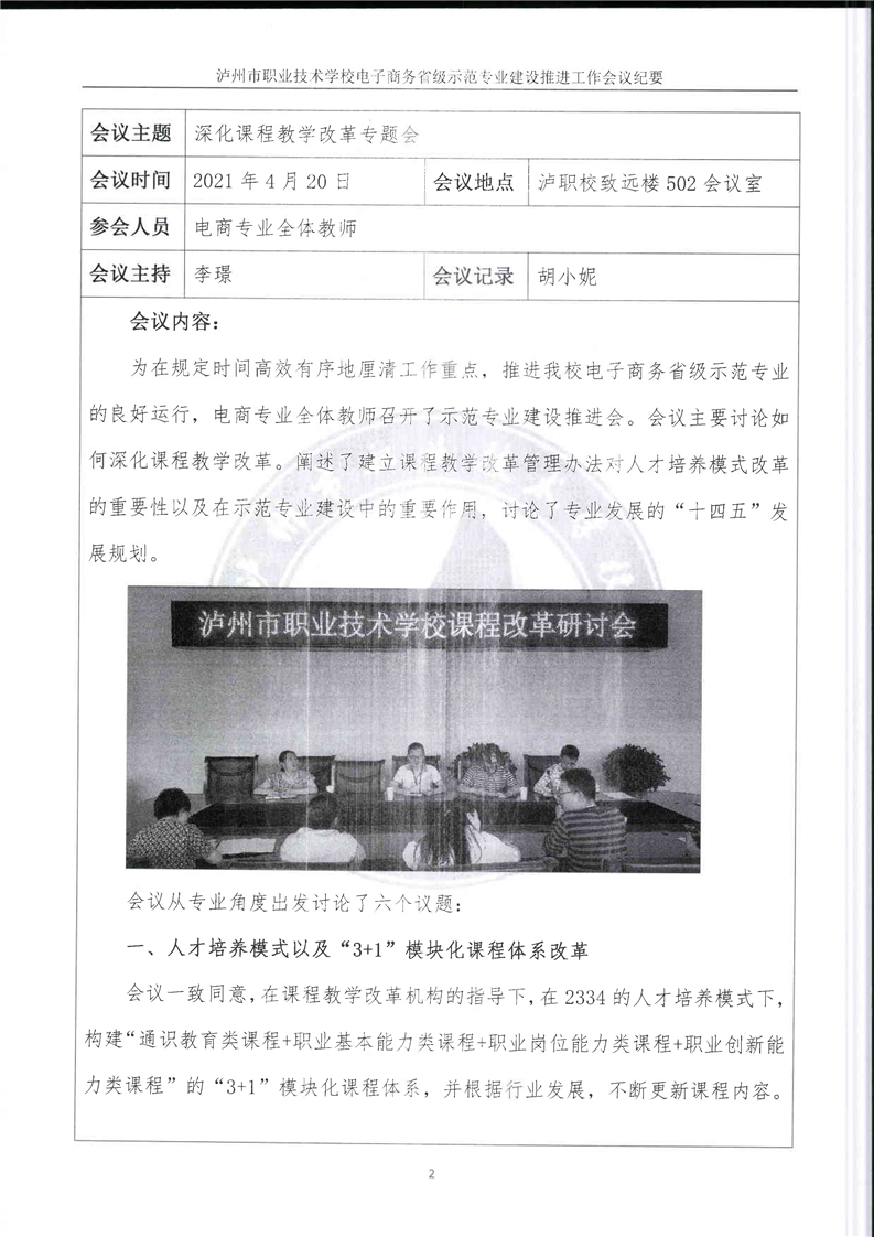 “3+1”模块化课程体系改革研讨会议签到表、会议简报