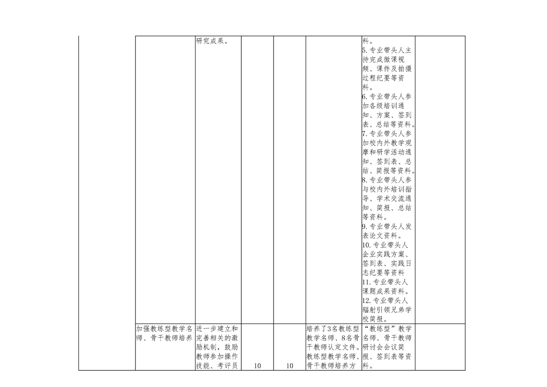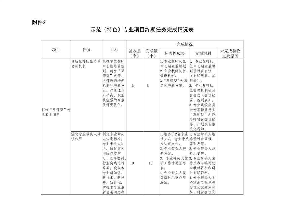 (打造“双师型”专业教学团队)终期任务完成情况一览表