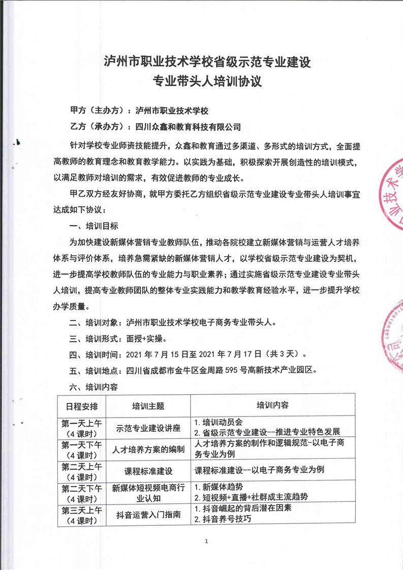专业带头人培训协议