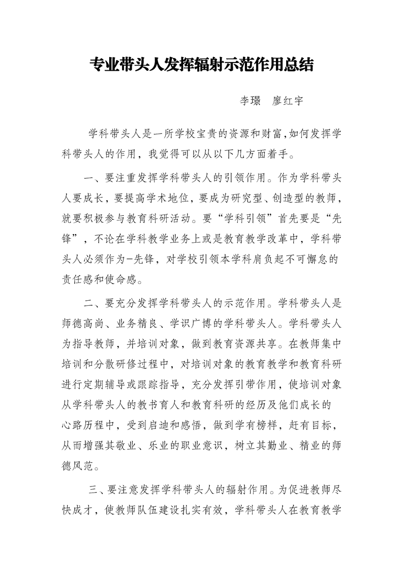 专业带头人发挥辐射示范作用总结
