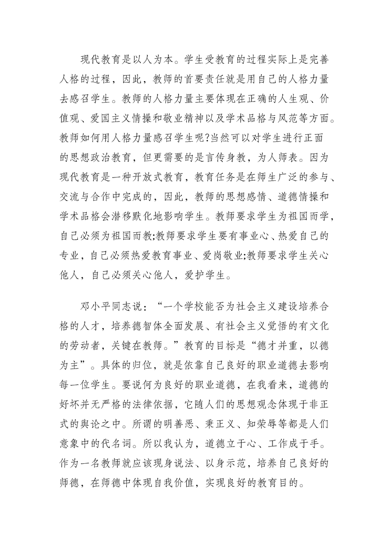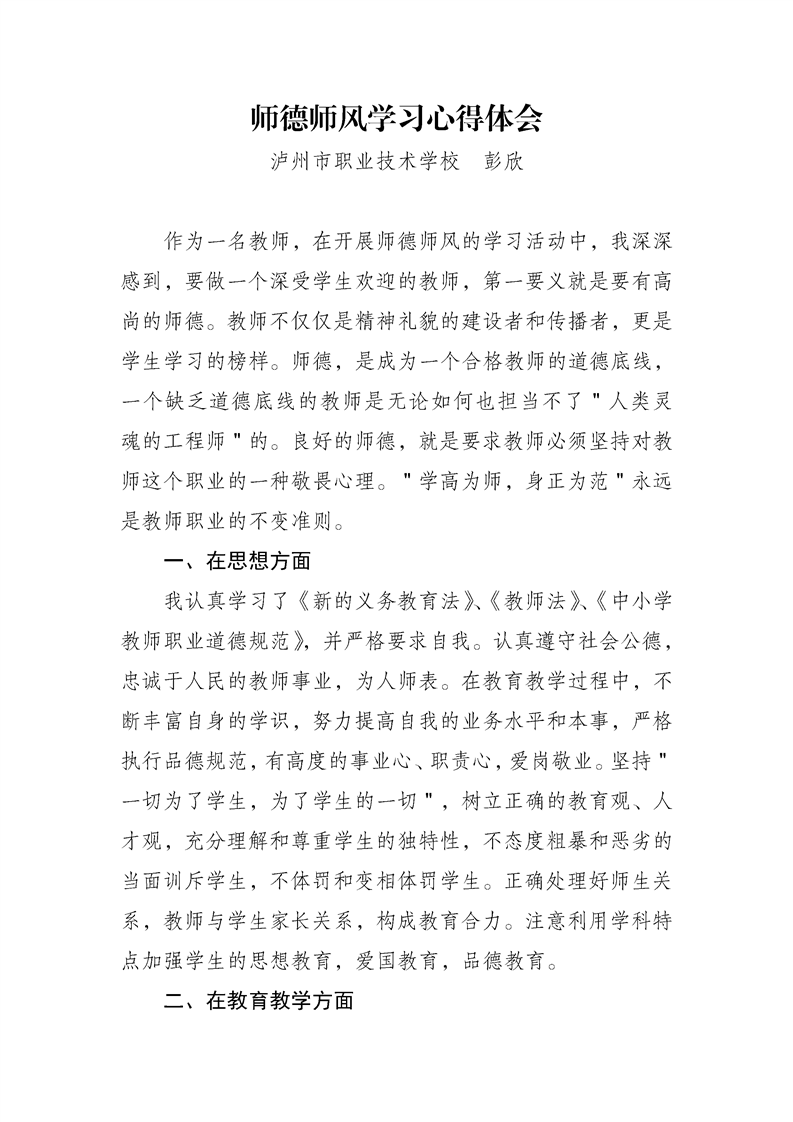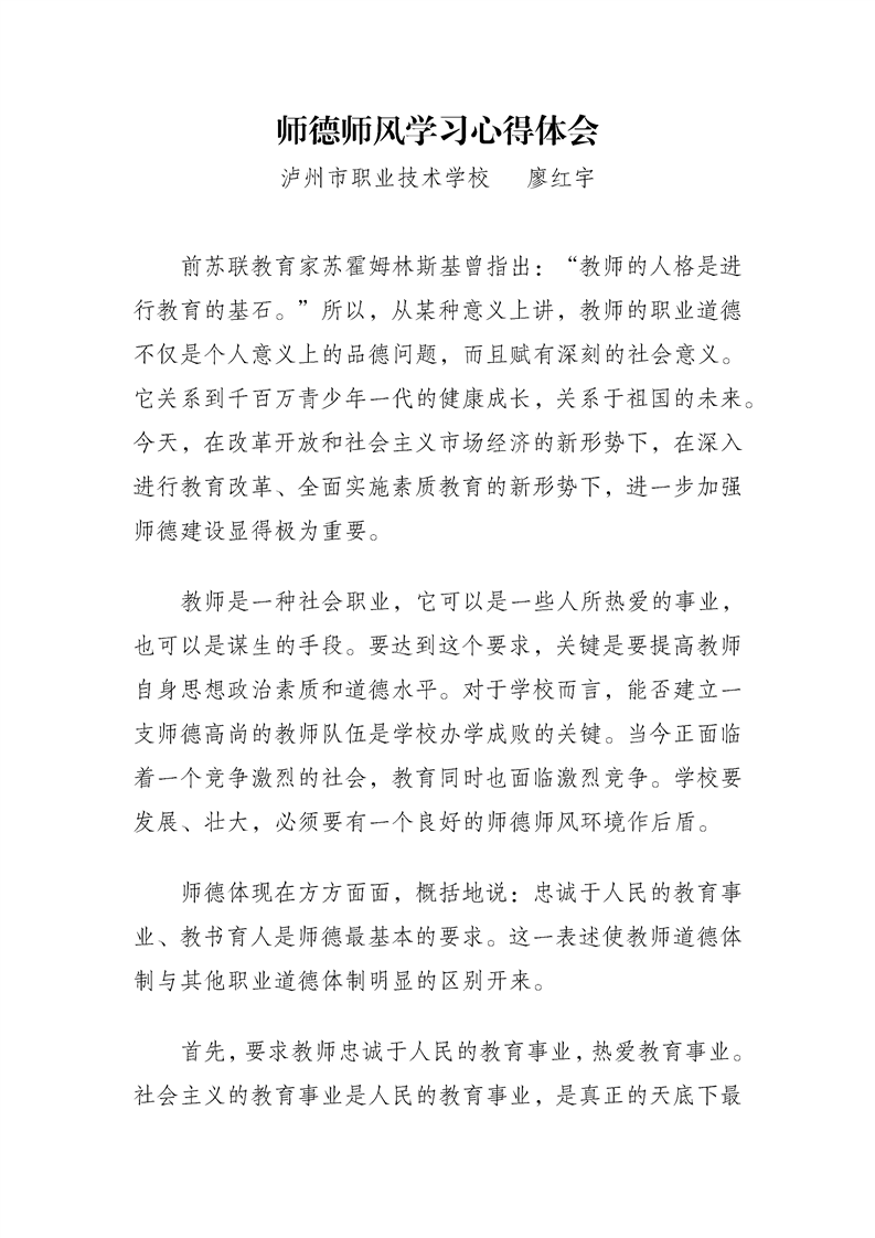师德师风学习心得体会