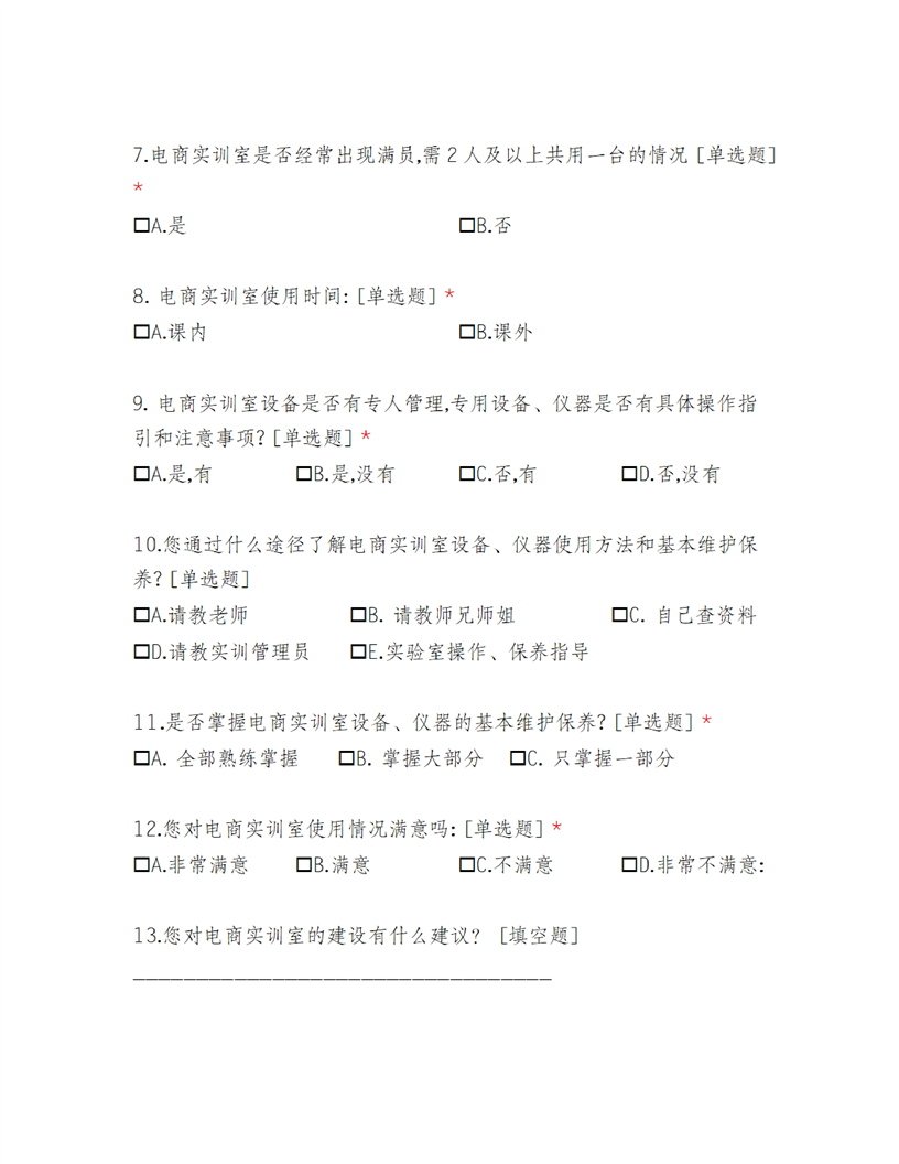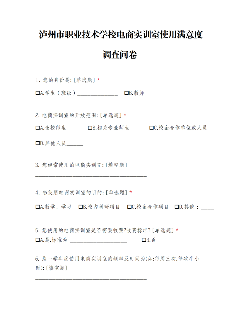 泸州市职业技术学校电商实训室使用满意度调查问卷