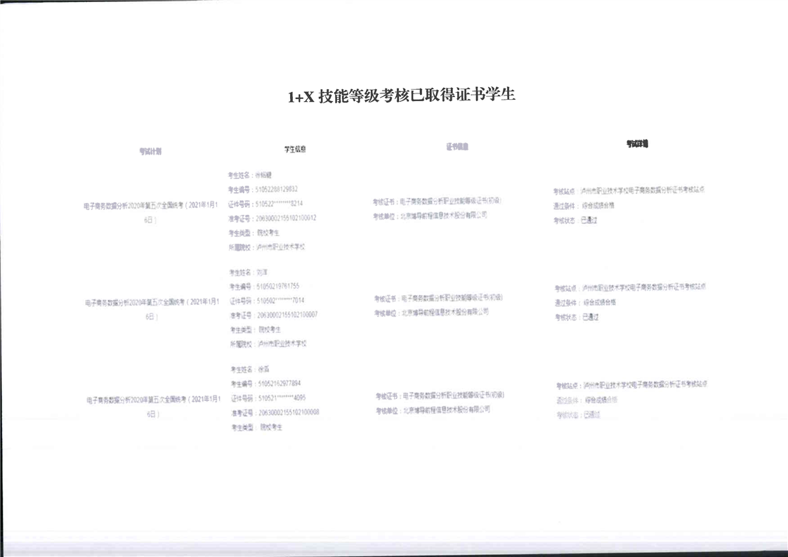1+X证书试点考证组织及考证合格情况