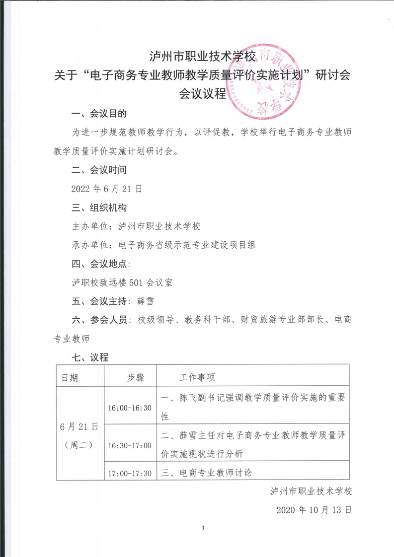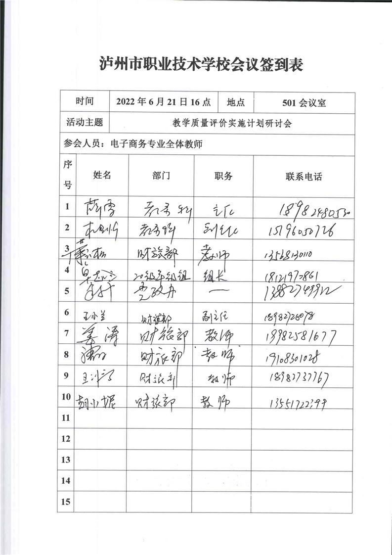 教学质量评价实施计划会议议程、会议纪要、签到表、照片