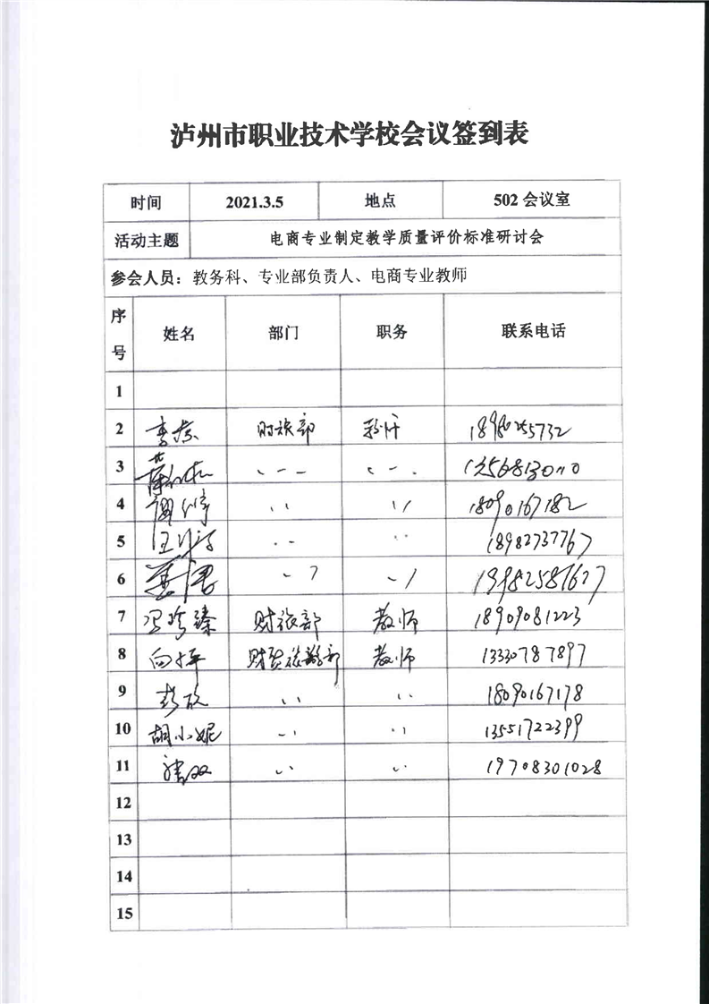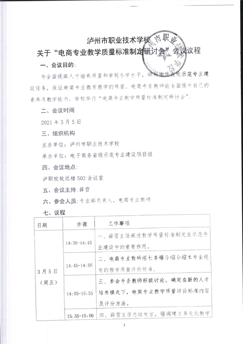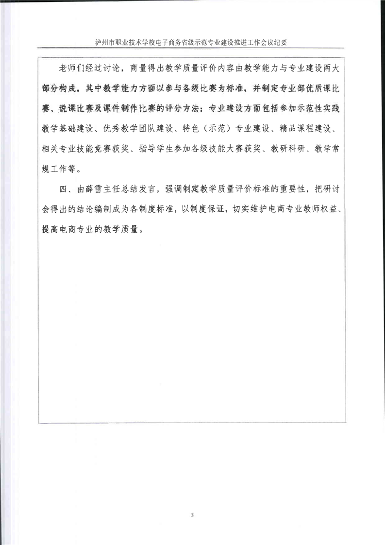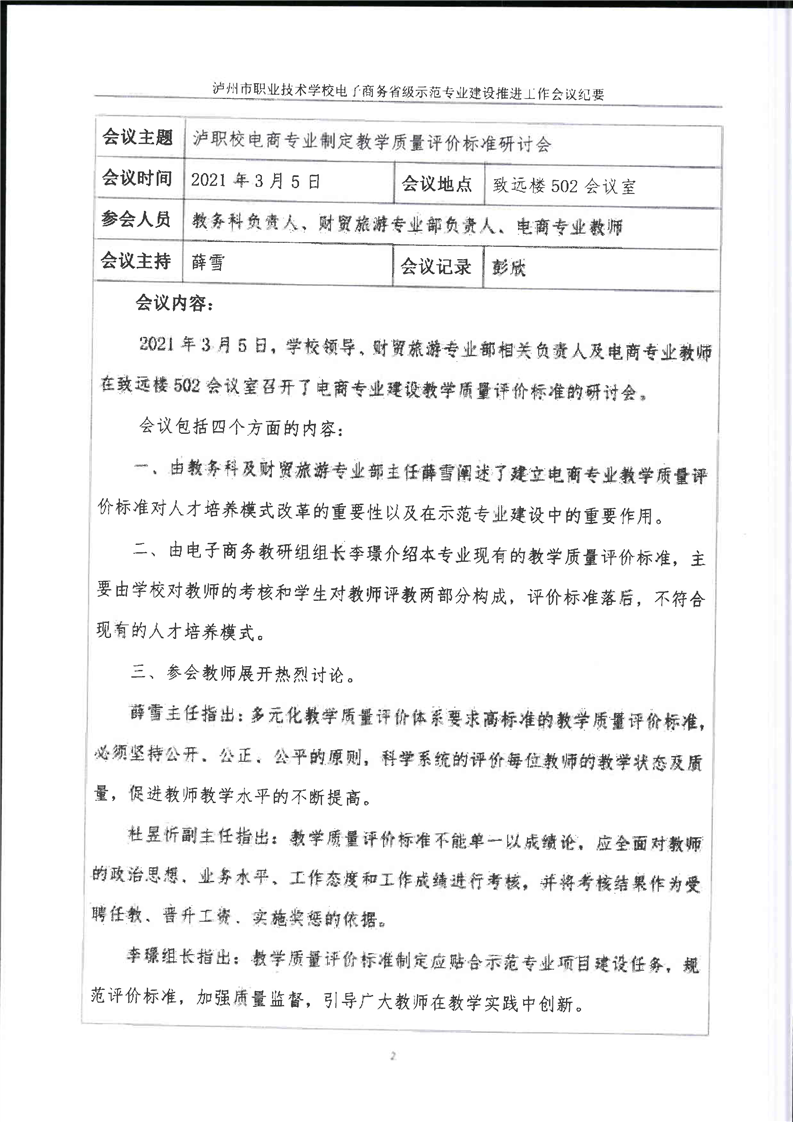 电子商务专业教学质量评价工作会议会议议程、会议纪要、签到表