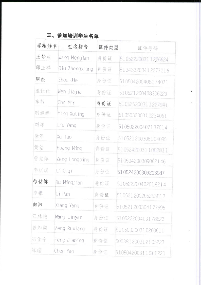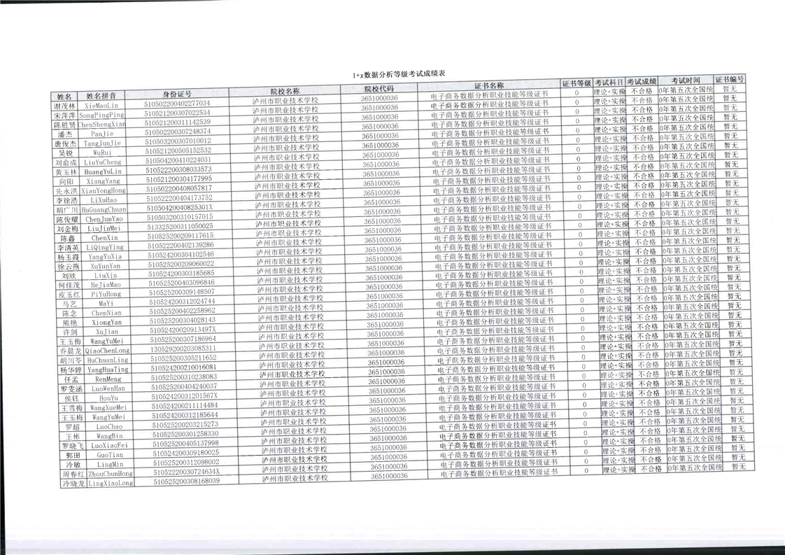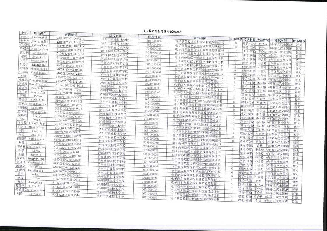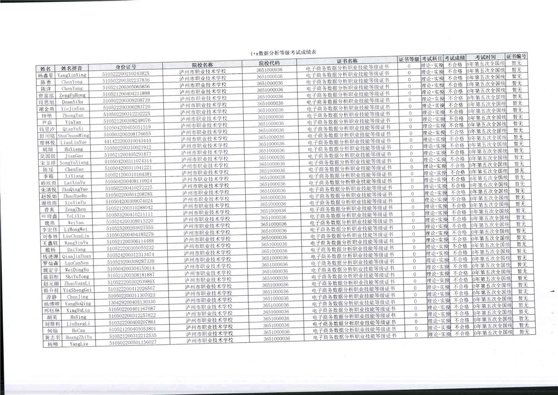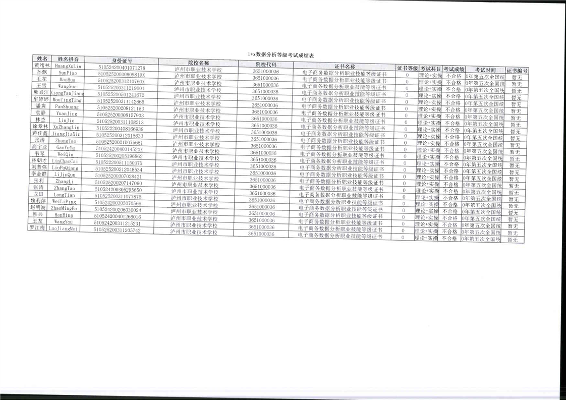 毕业生参与1+X技能等级考核报名资料、成绩单等