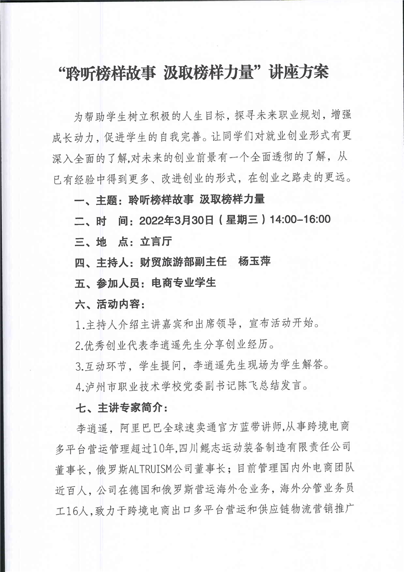 邀请优秀创业代表来校分享创业讲座的邀请函、方案、简报