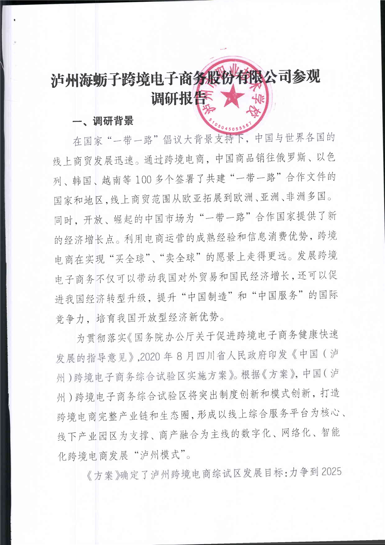 泸州海蛎子跨境电商股份有限公司调研报告