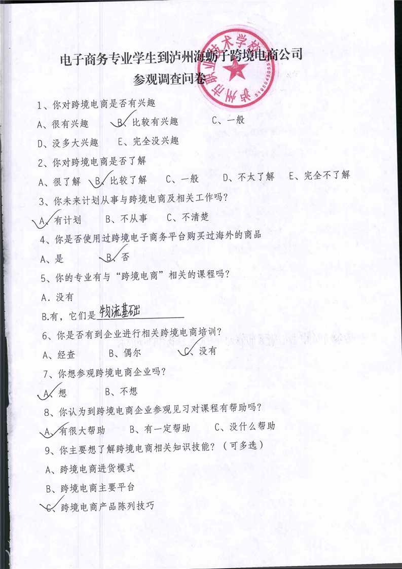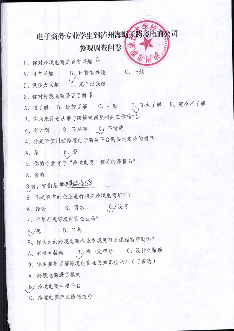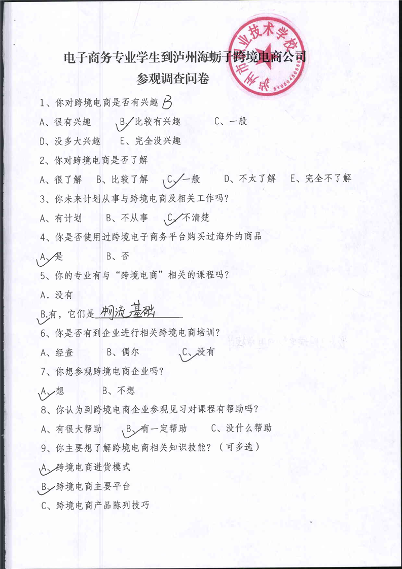 泸州市职业技术学校跨境电商校企合作师生调研问卷