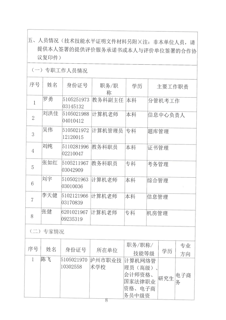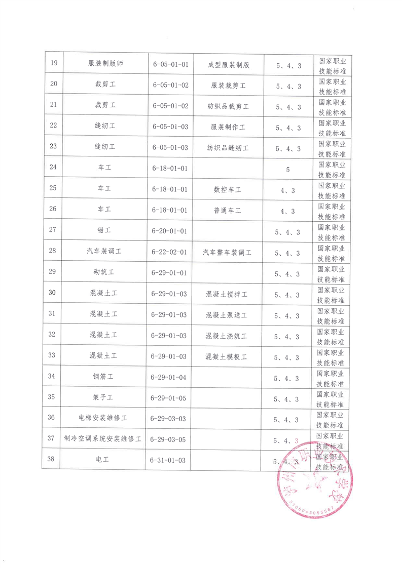 技能鉴定服务项目汇总表