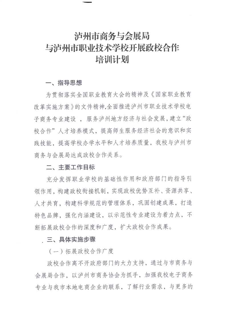 泸州市商务局合作培训计划