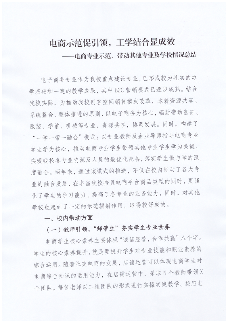 电商示范促引领,工学结合显成效