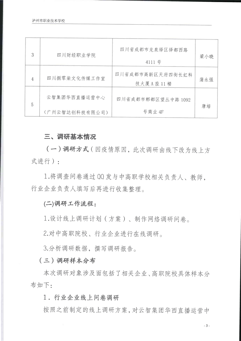 行业企业、中高职院校专业调研报告