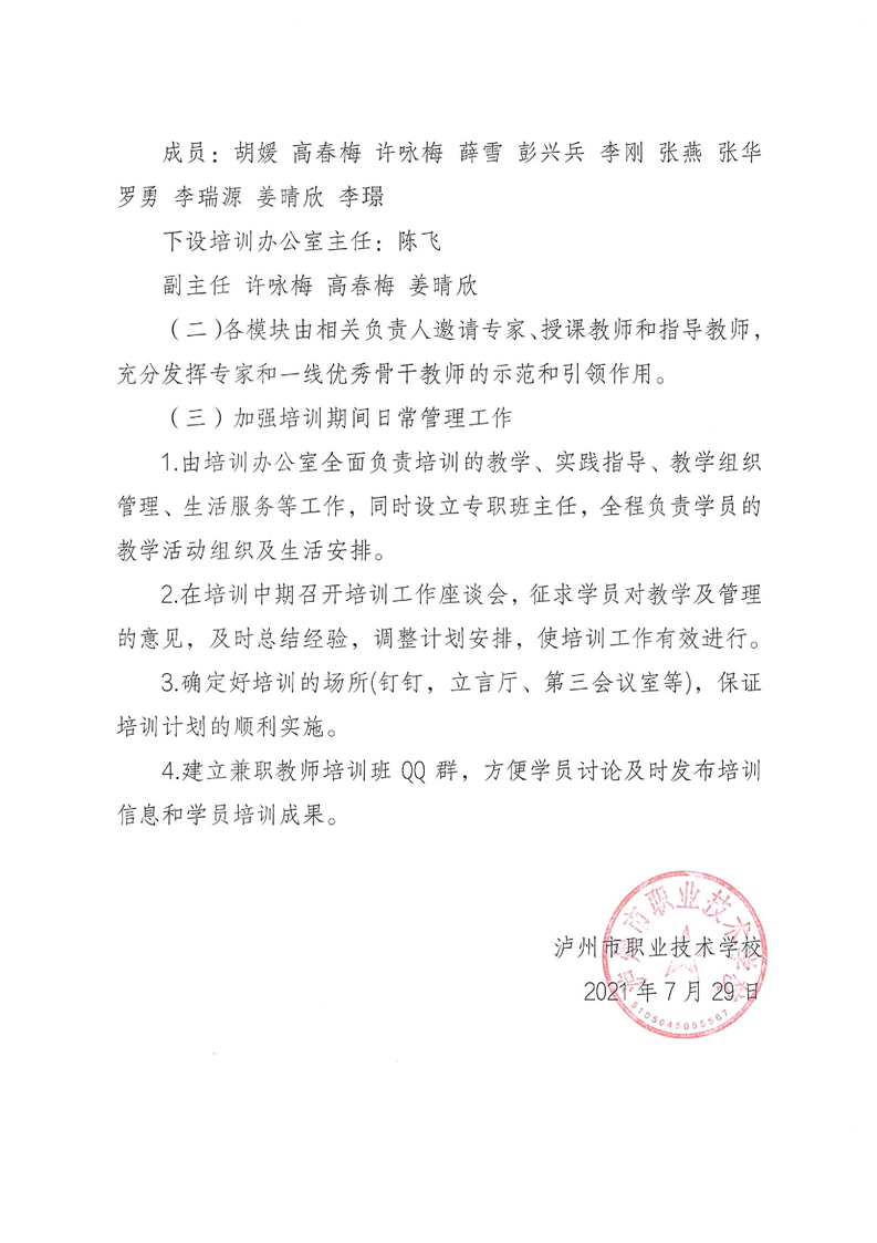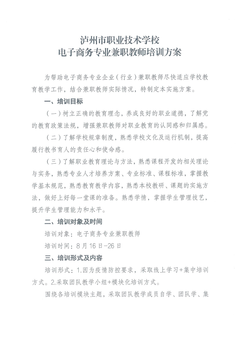 泸州市职业技术学校电子商务专业兼职教师培训方案