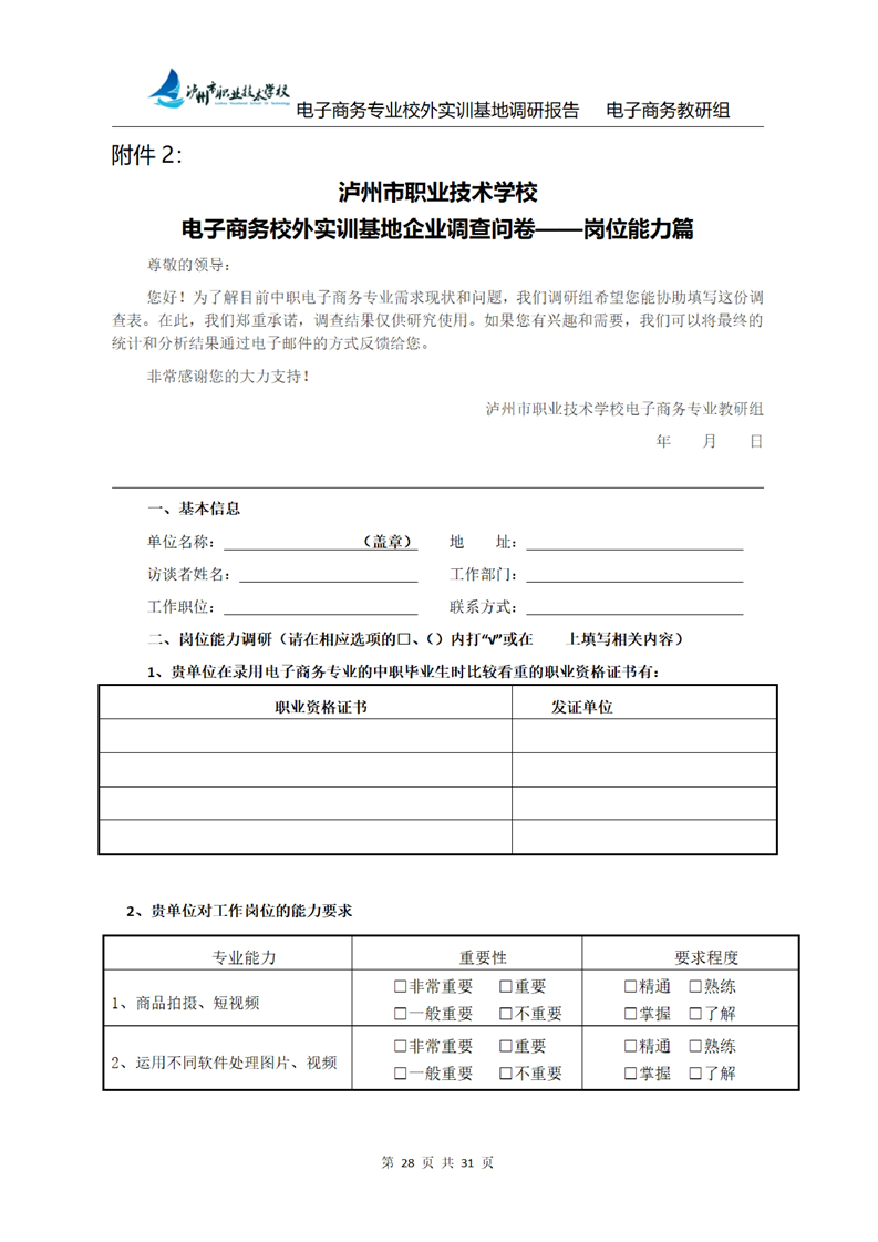 校外实训基地调研报告