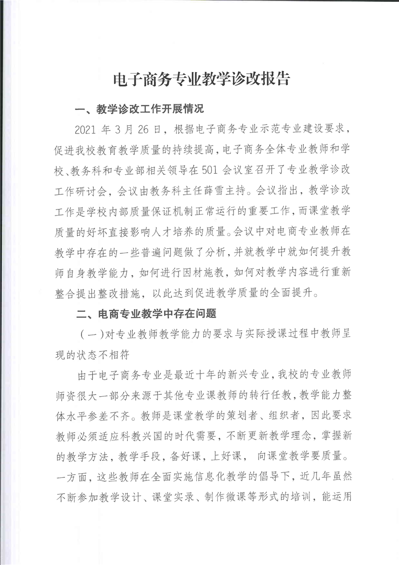 专业教学诊改报告