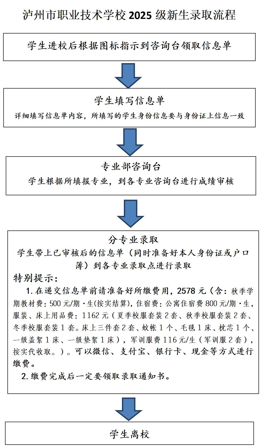 一、录取时间:2025年6月22日上午8:00-——下午17:30前。(古蔺、叙永片区家庭住址较远的学生可延长至6月23日中午12:00前)