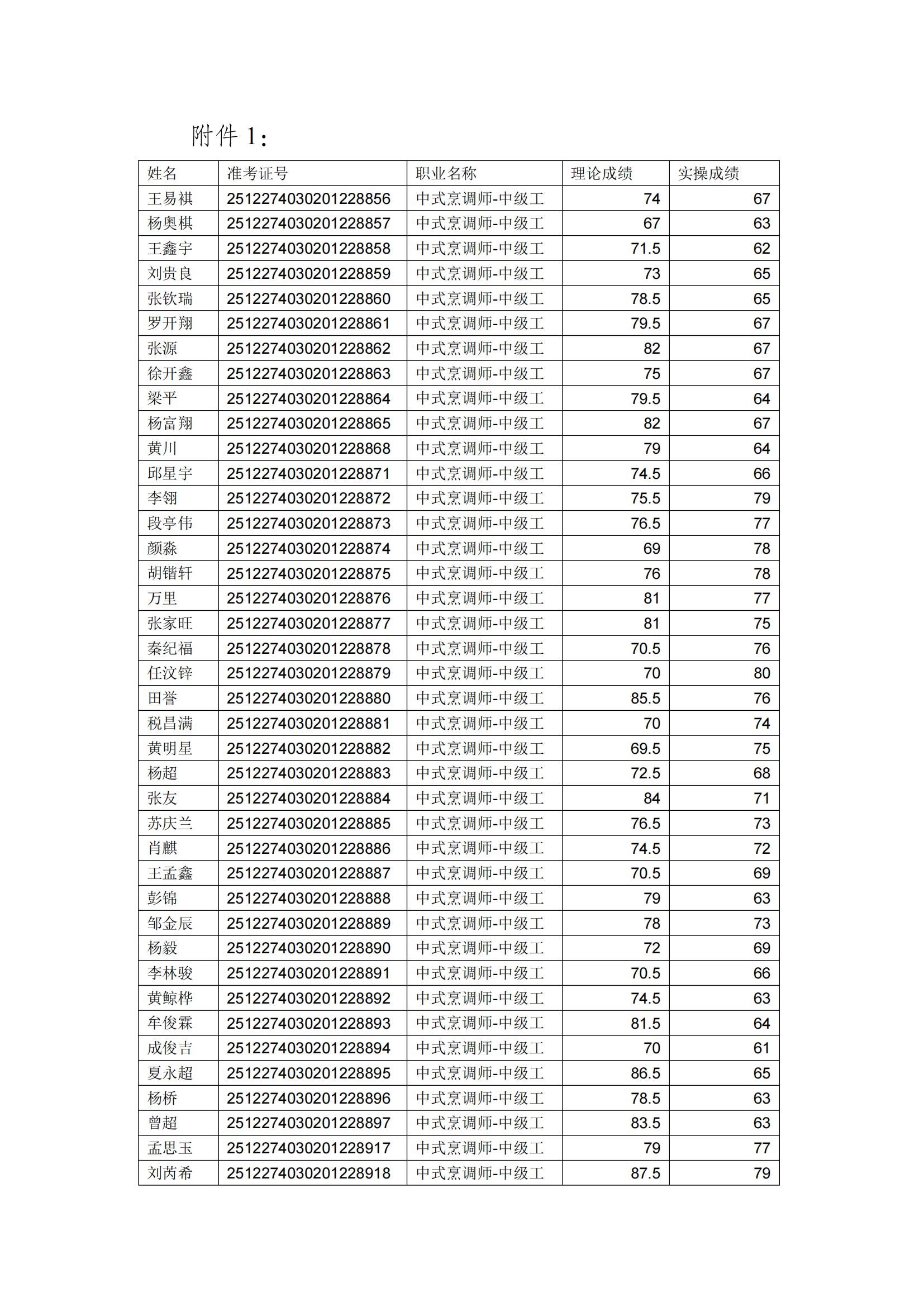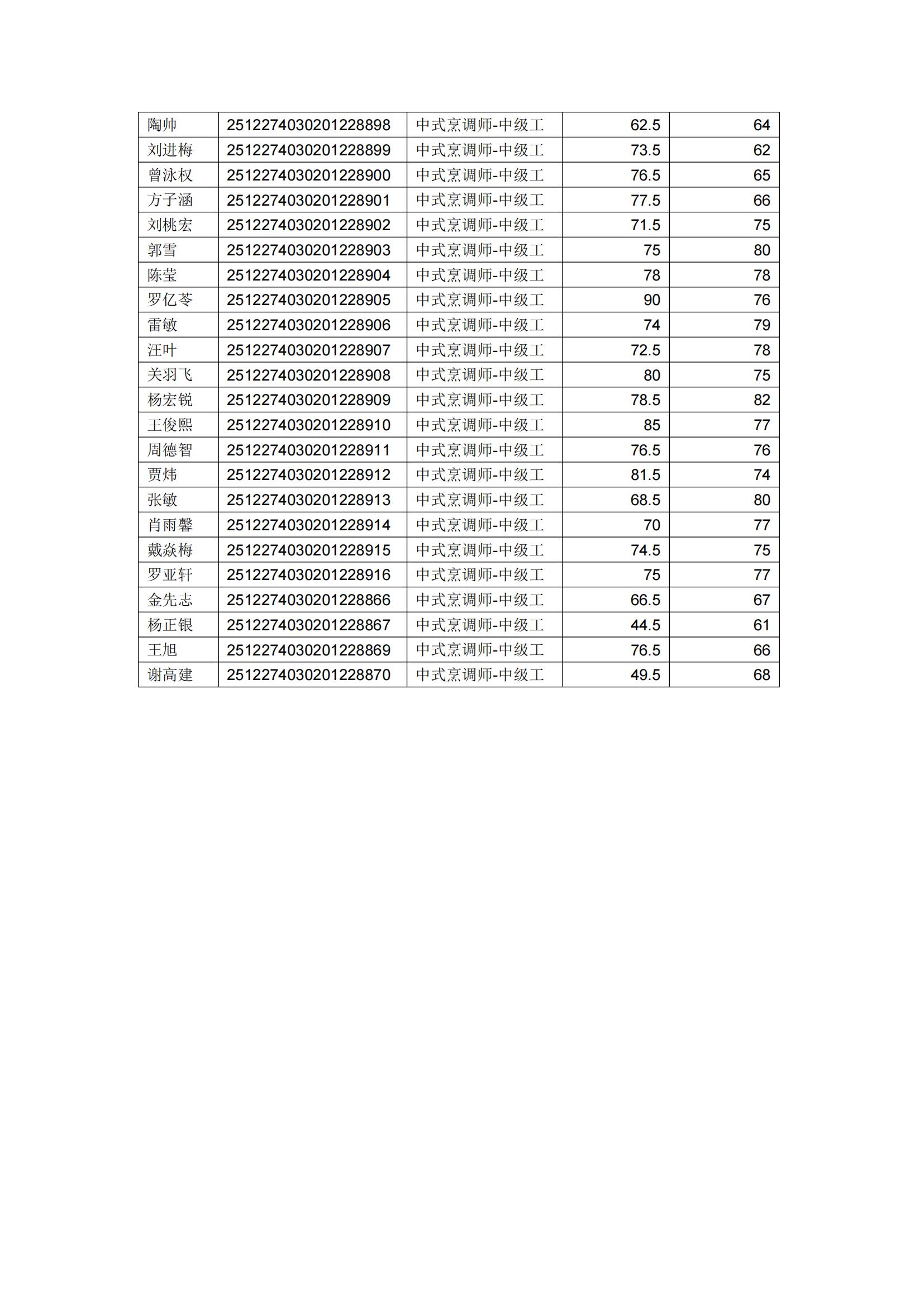 泸州市职业技术学校2025年12月27日中式烹调师四级职业技能等级认定成绩公示