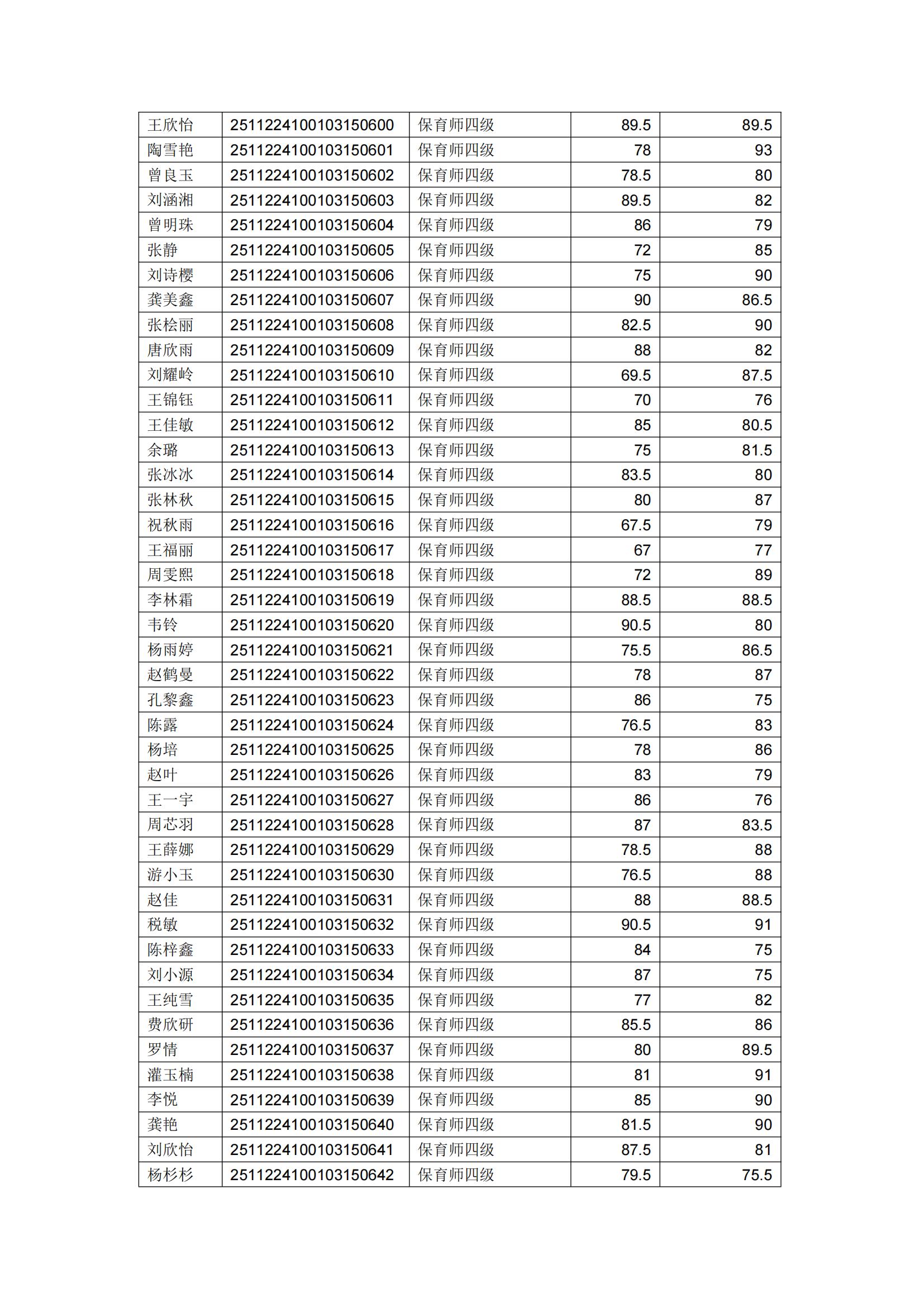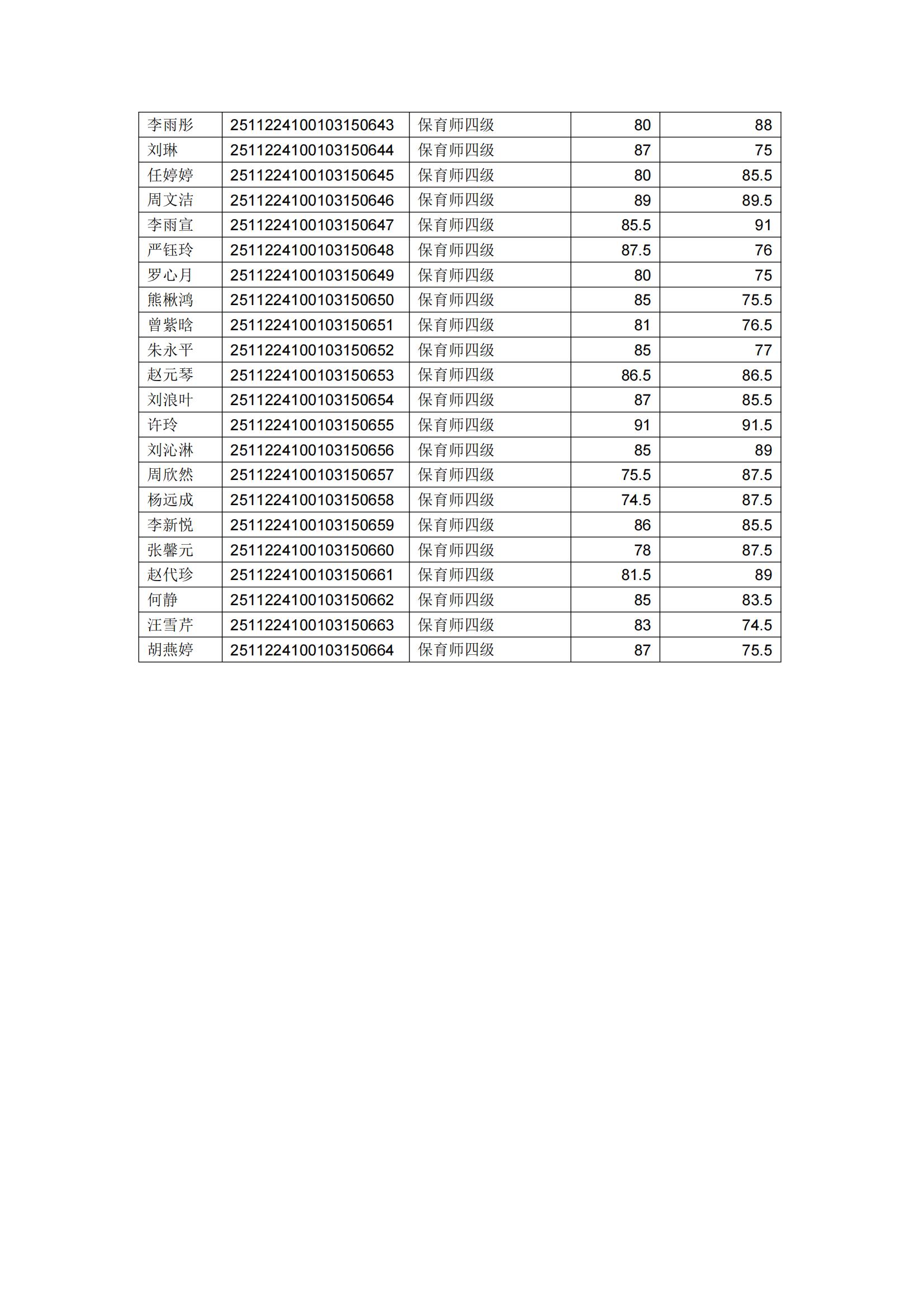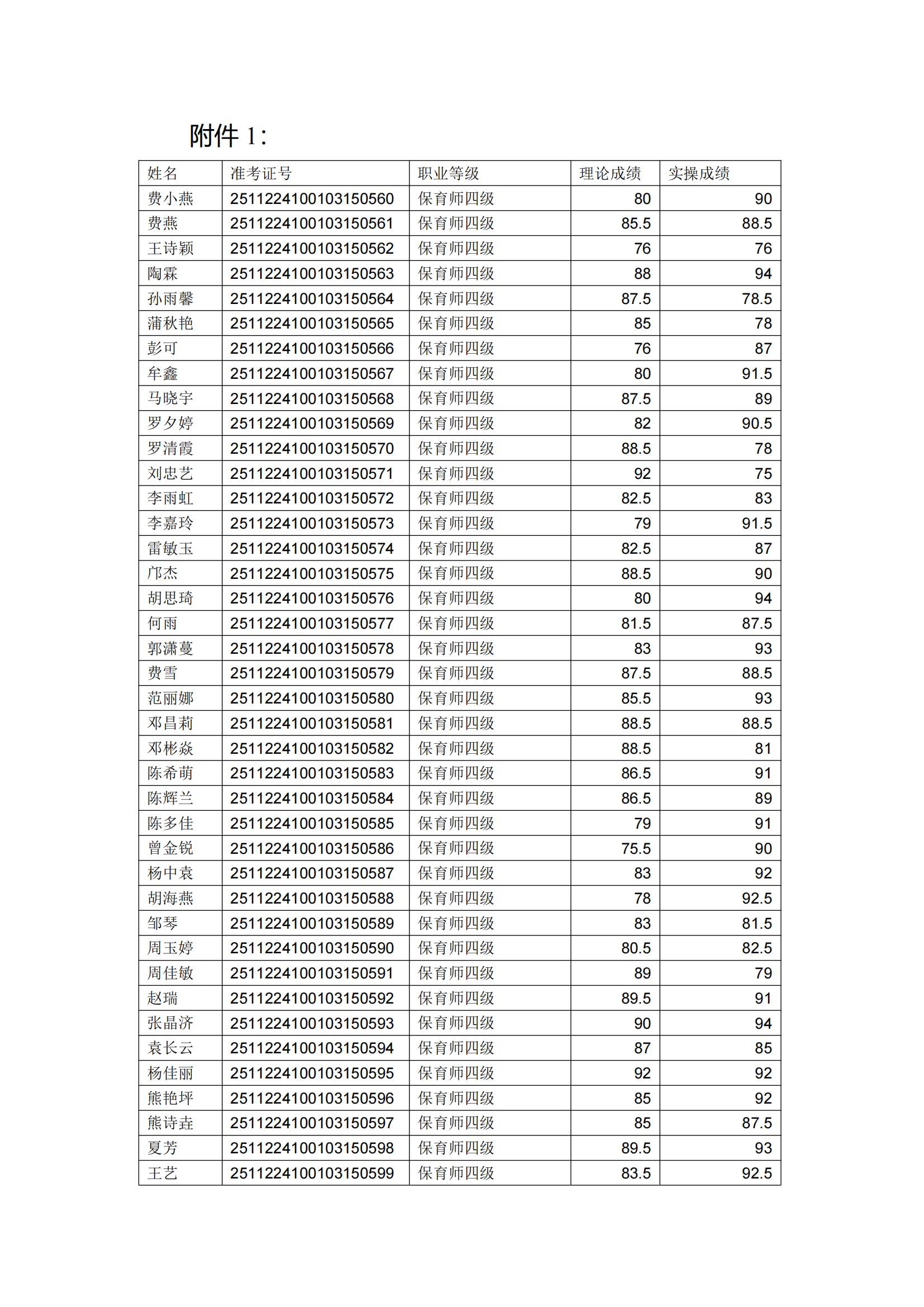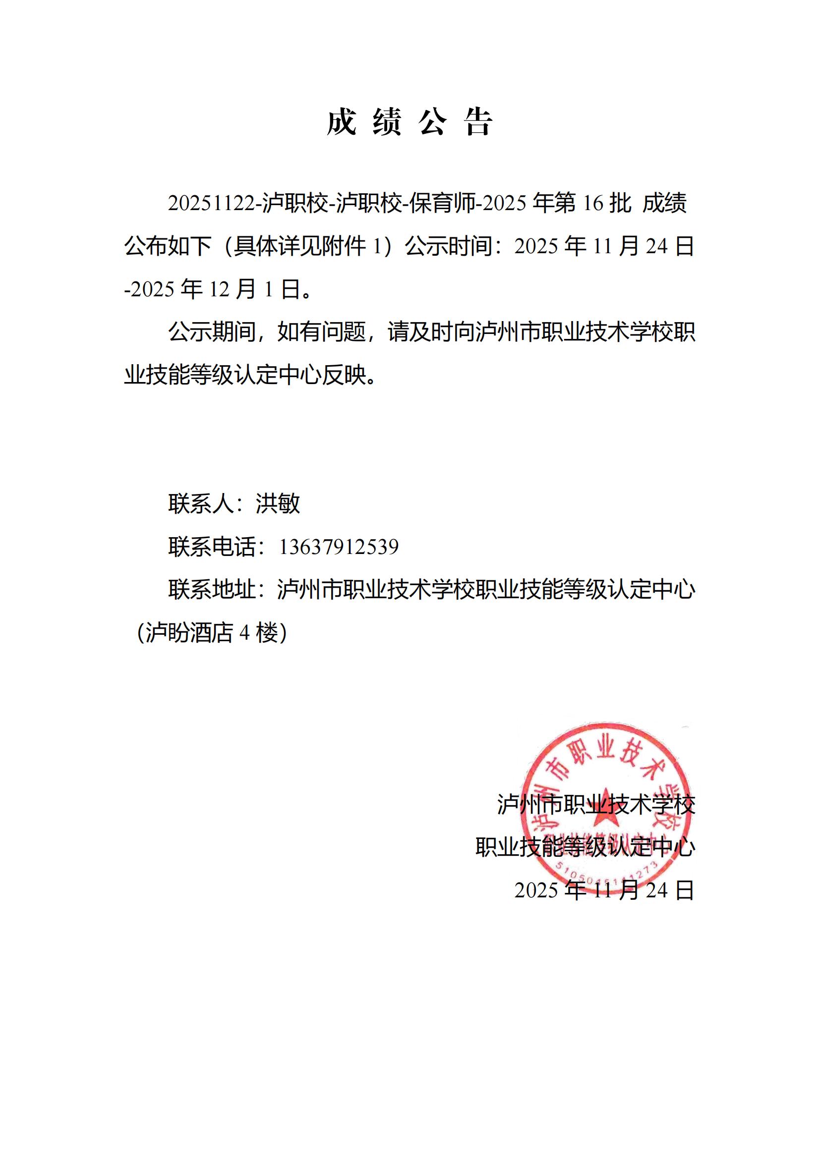 泸州市职业技术学校2025年11月22日保育师四级职业技能等级认定成绩公示