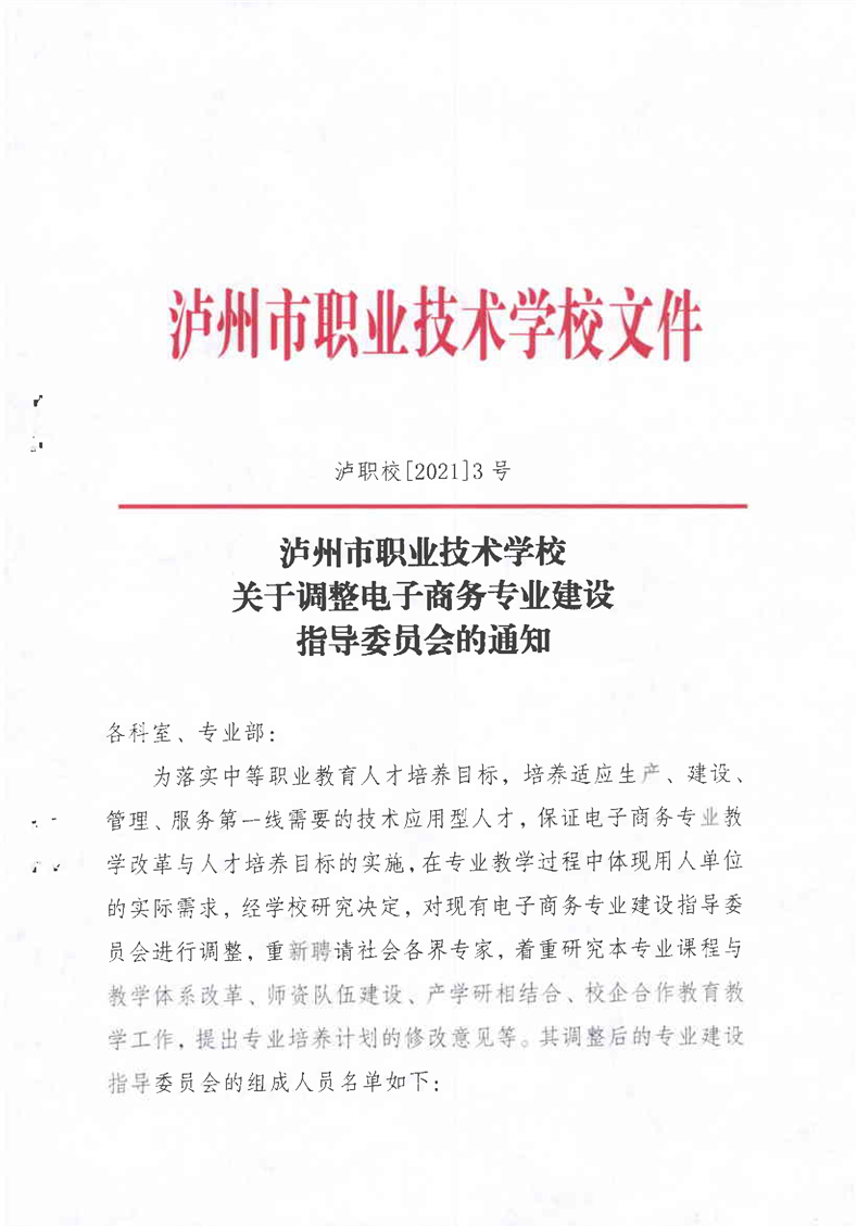 2-1-2.调整电商专业建设指导委员会的通知
