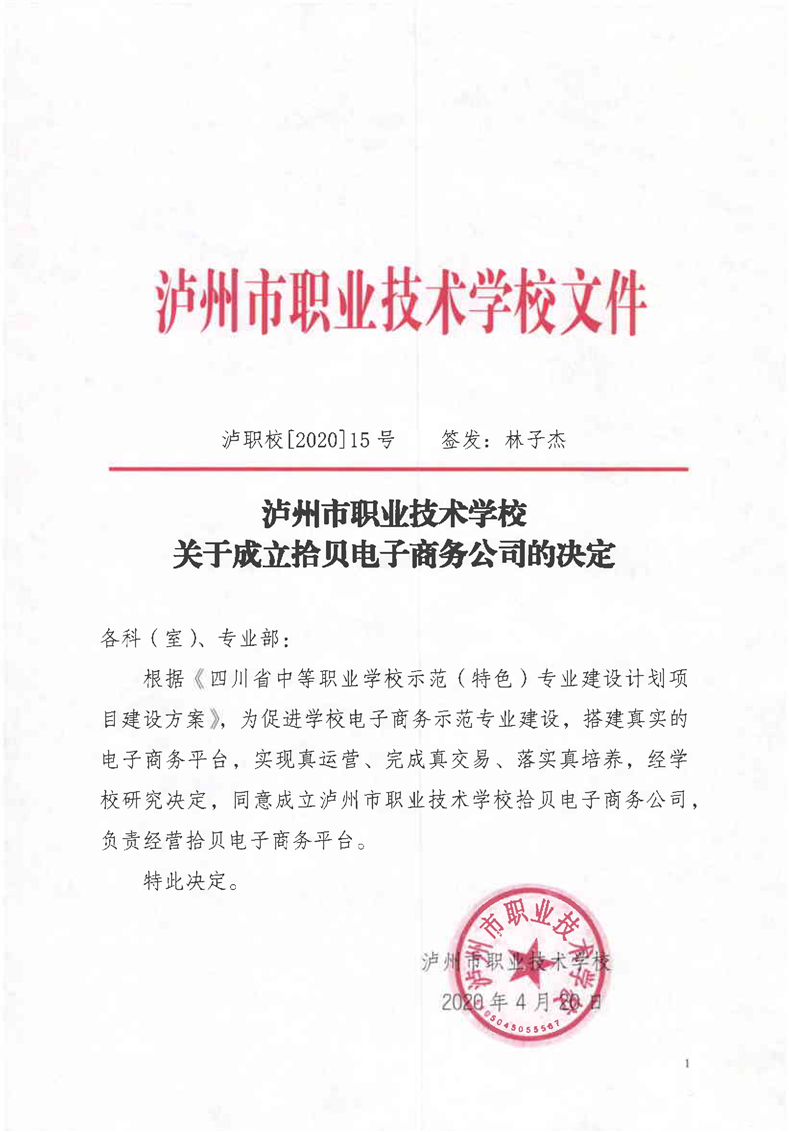 3-1.泸职校关于成立拾贝电商公司决定