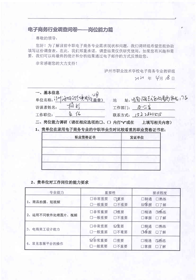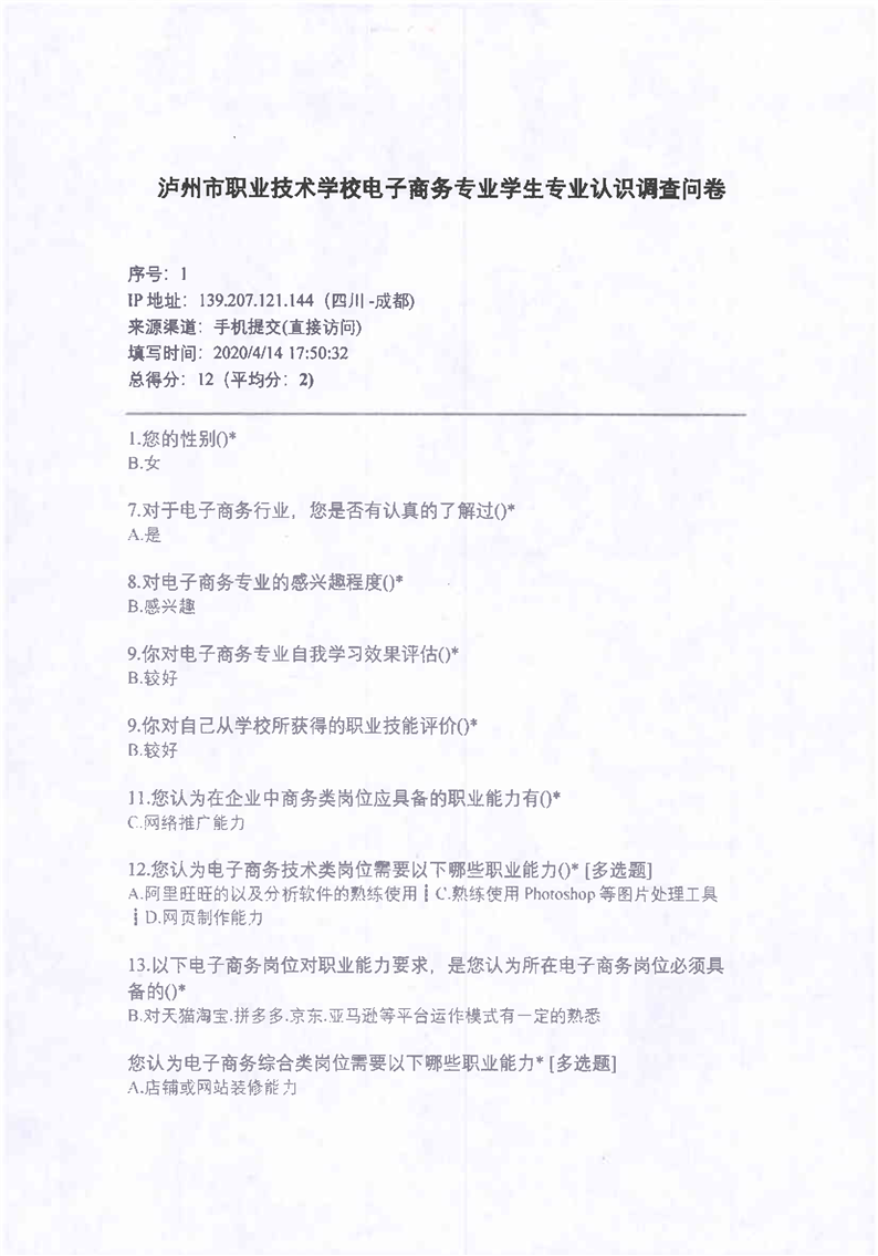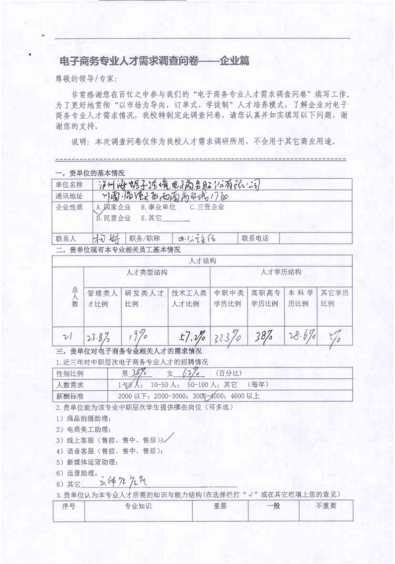 2-4电子商务课程改革学生调研问卷、企业调研问卷