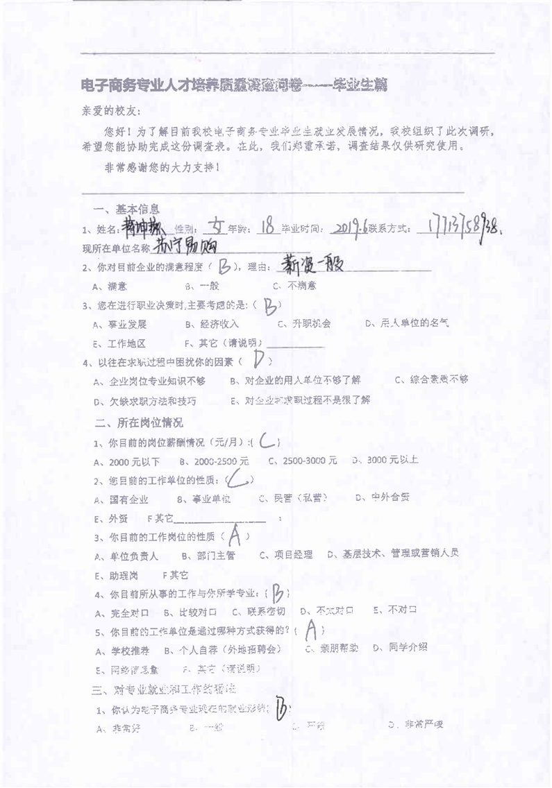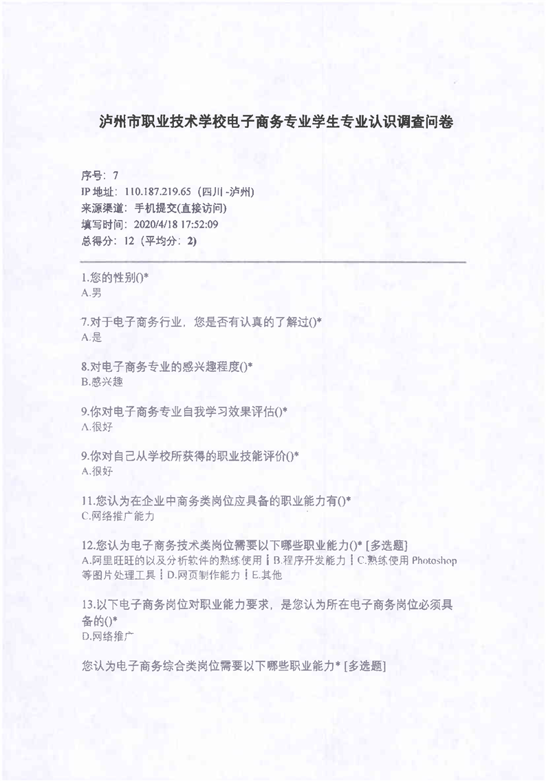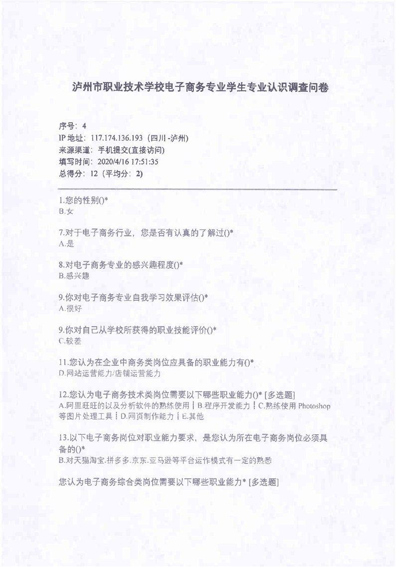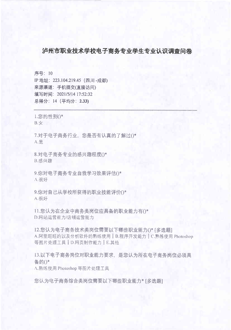 2-4电子商务课程改革学生调研问卷、企业调研问卷