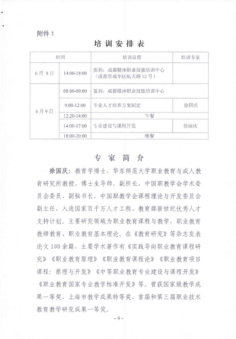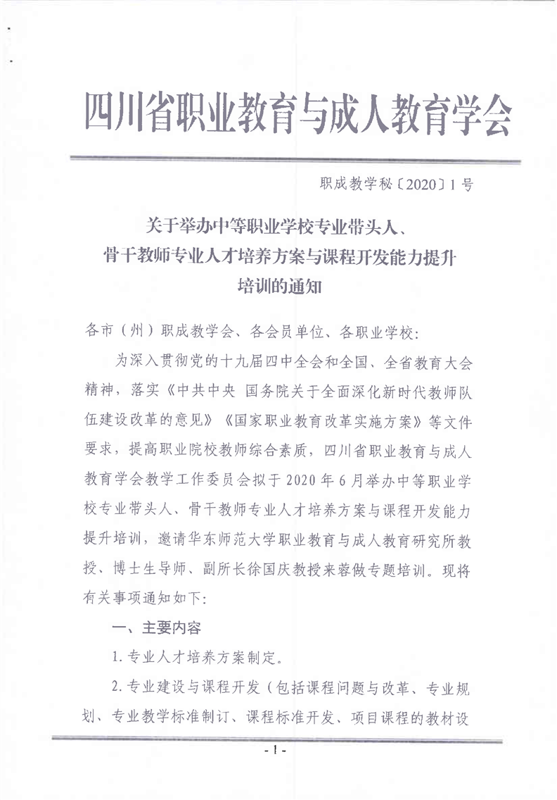 参加中职学校专业带头人、骨干教师专业人才培养方案与课程开发能力提升培训的通知