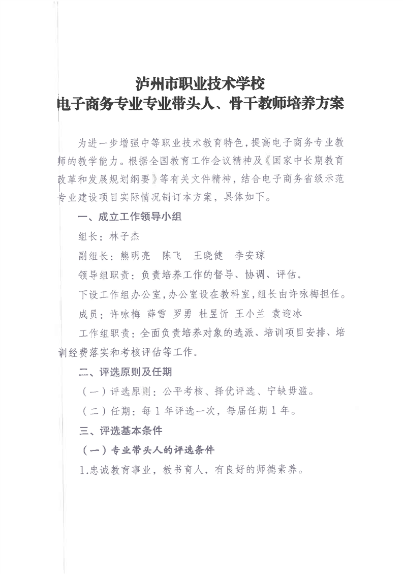 电子商务专业带头人、 骨干教师培养方案