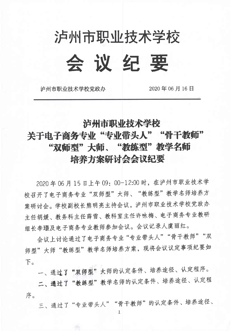 电子商务专业专业带头人、骨干教师、双师型大师、教练型教学名师培养方案研讨会会议纪要