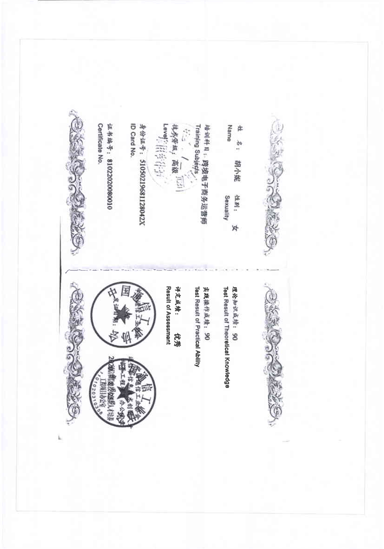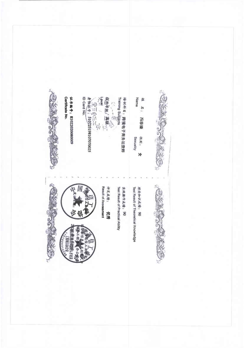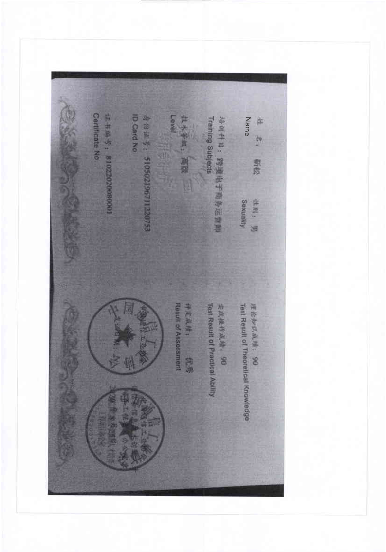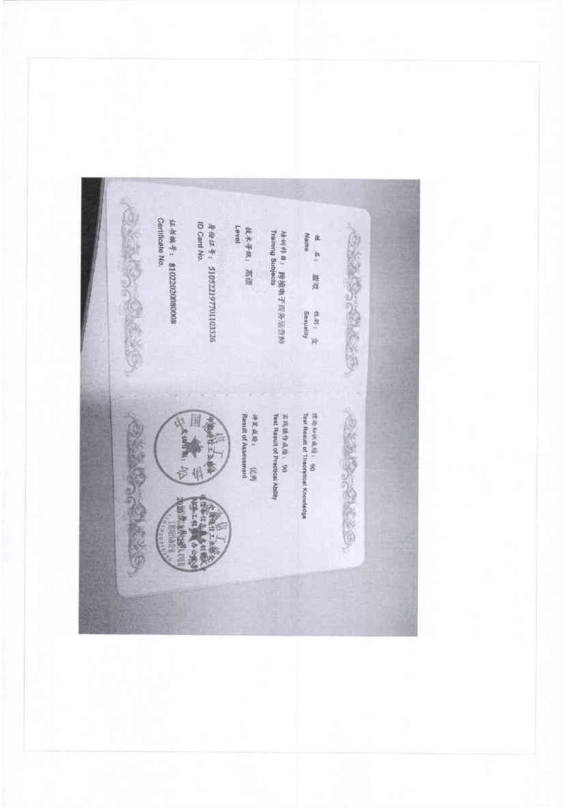 跨境电商高级师资培训证书