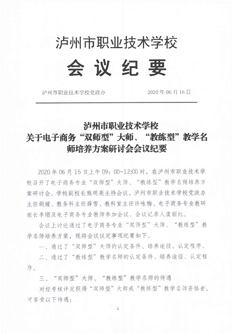 电子商务双师型大师、教练型教学名师培养方案研讨会会议纪要