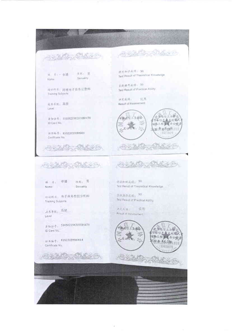跨境电商师资培训证书