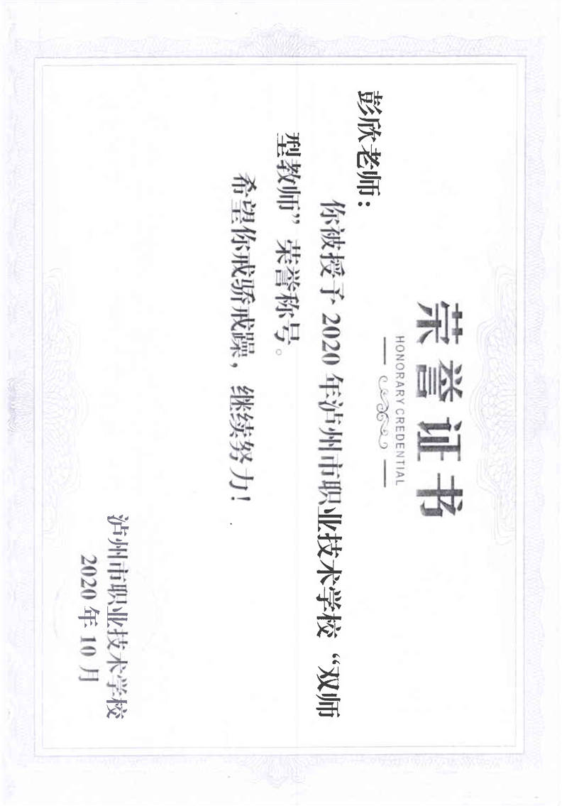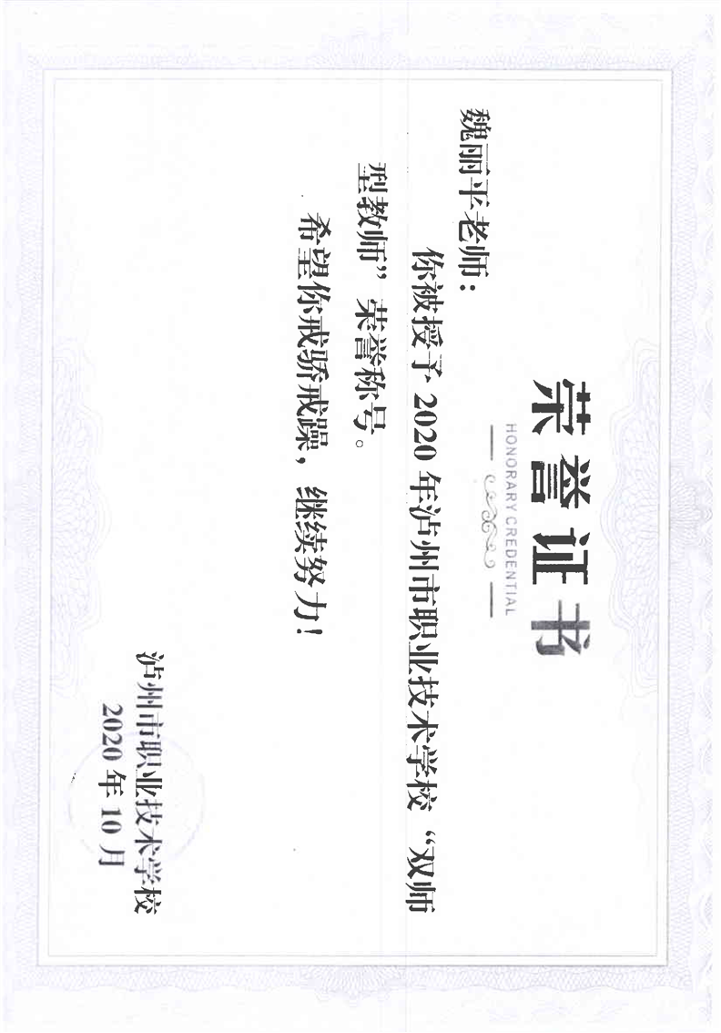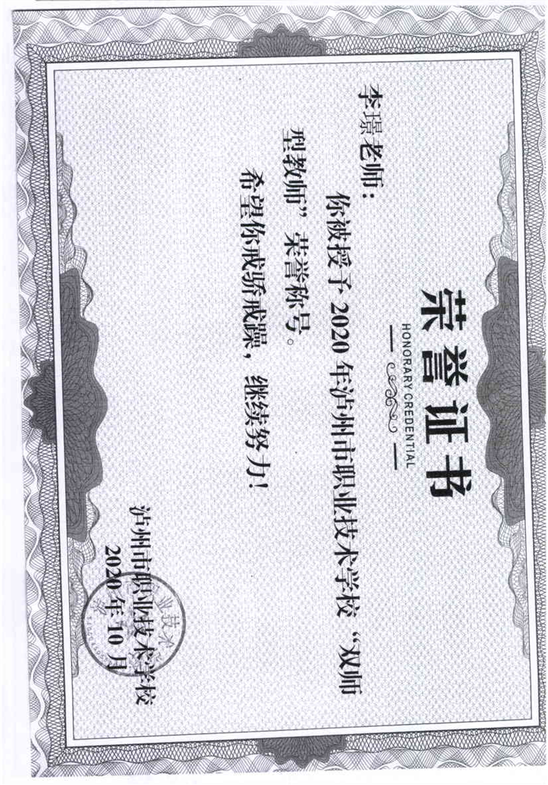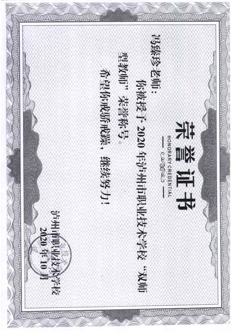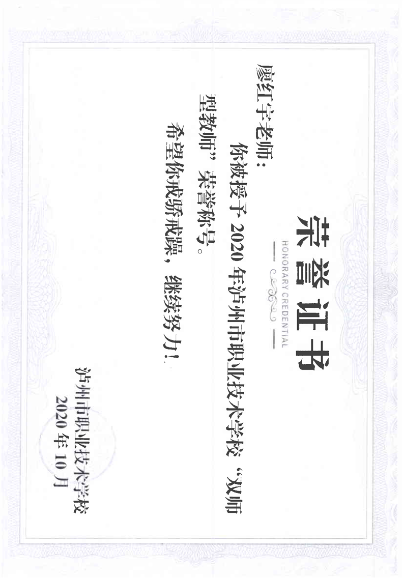 双师型教师荣誉证书