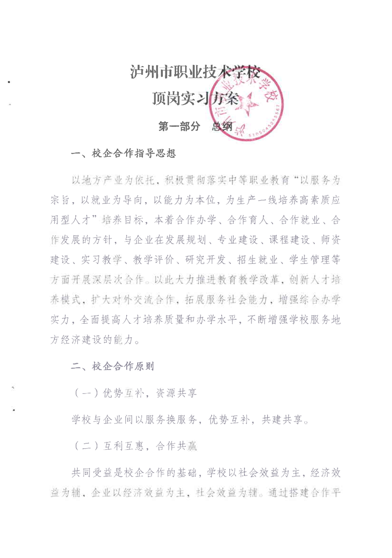 2-4 学生顶岗实习方案