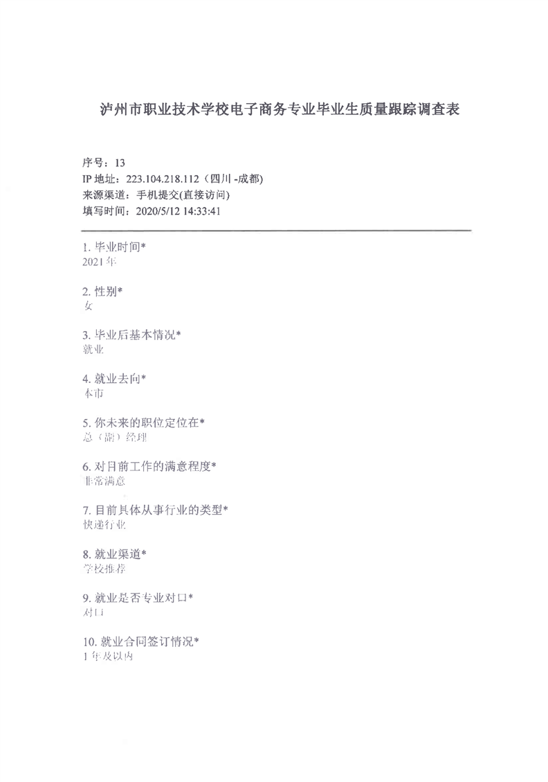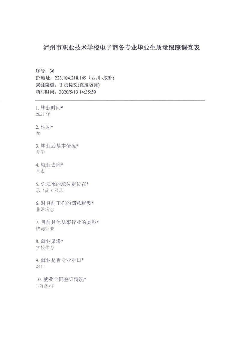 3-4 毕业生质量跟踪调查样表