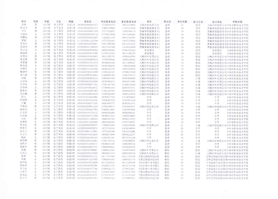 3-7 顶岗实习信息平台电商专业学生实习数据